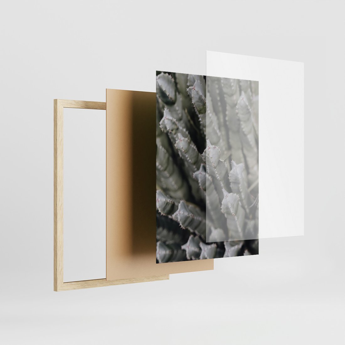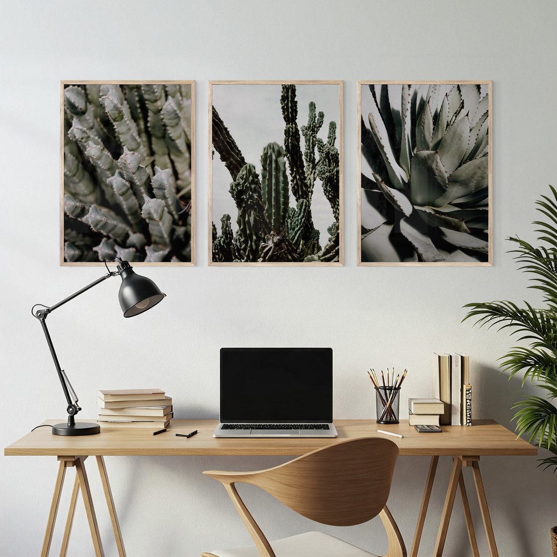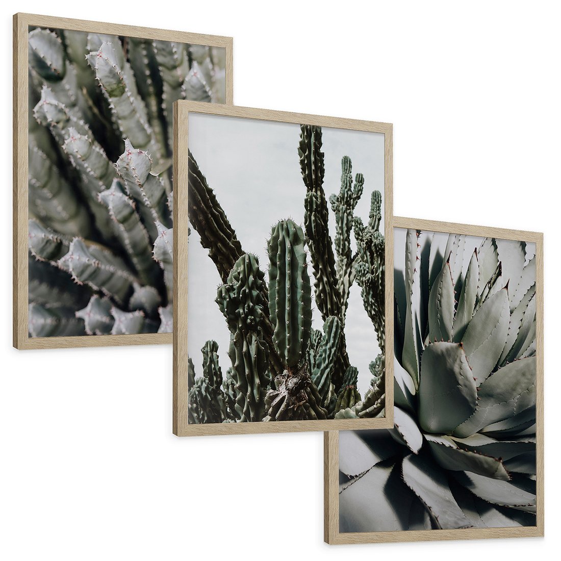 Zestaw obrazy w ramie, plakaty - kaktus, sukulent, roślina - rama drewno