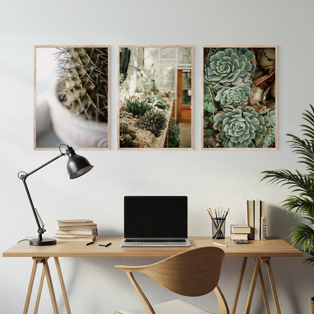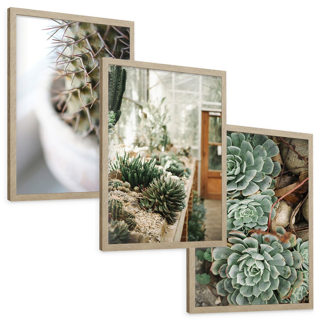 Zestaw obrazy w ramie, plakaty - kaktus, sukulenty, rośliny - rama drewno