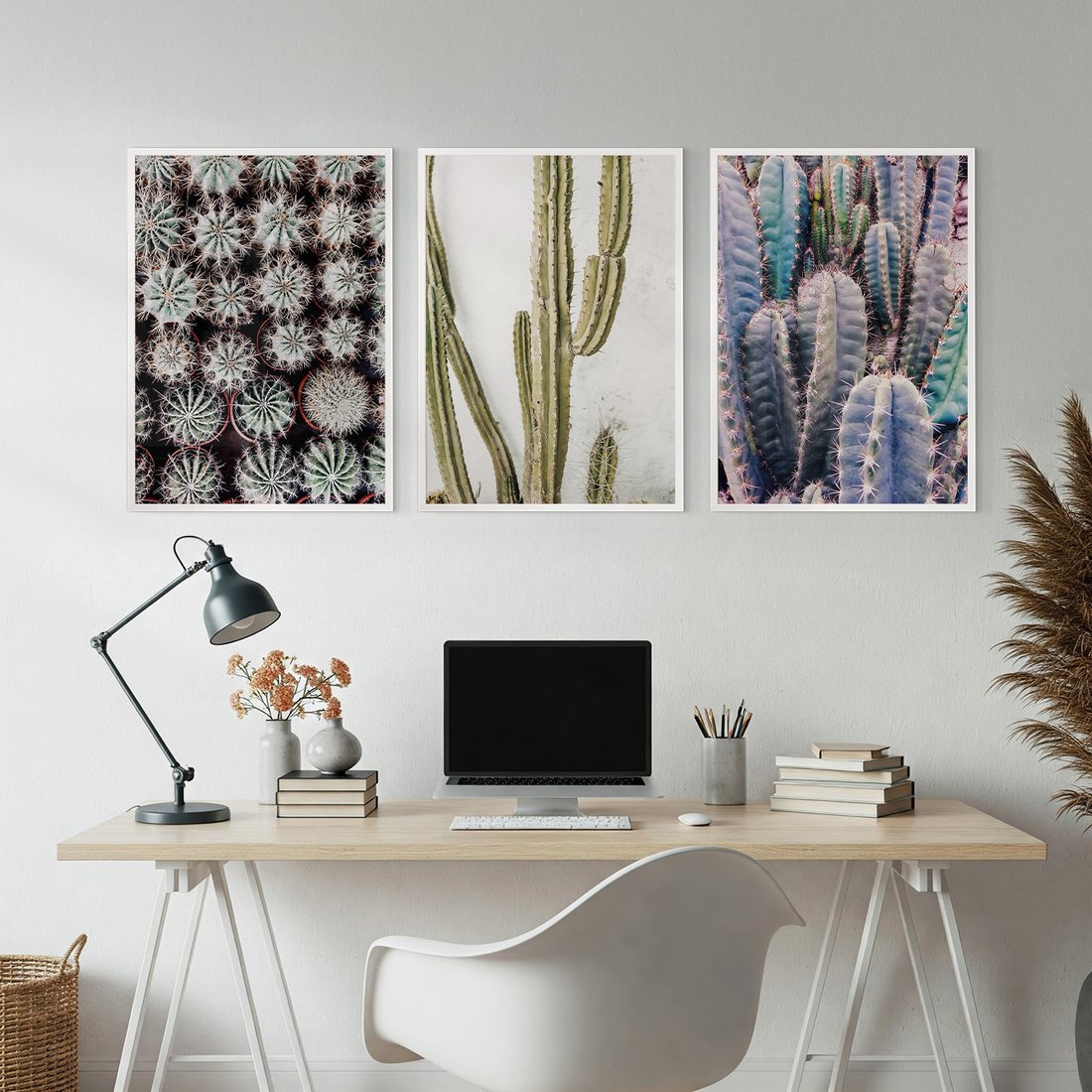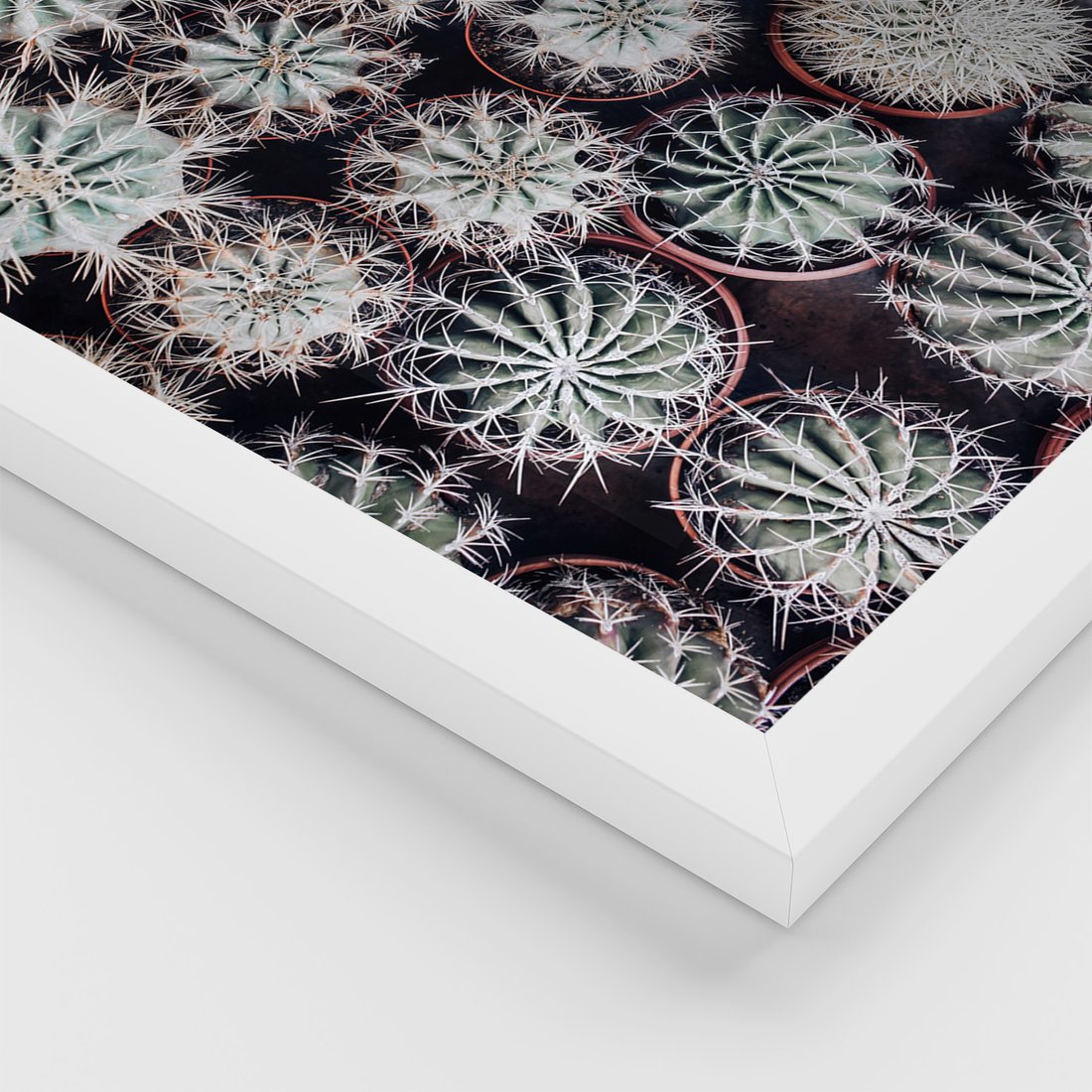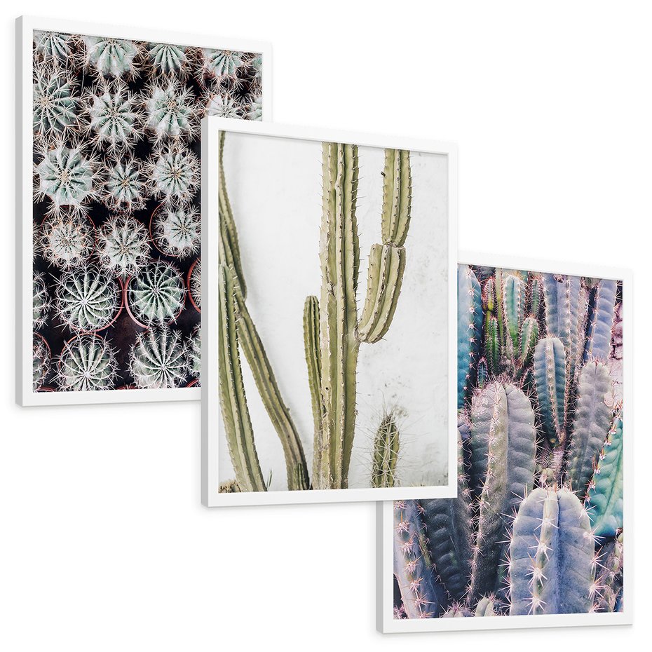 Zestaw obrazy w ramie, plakaty - kaktusy, rośliny, kolce - rama biała