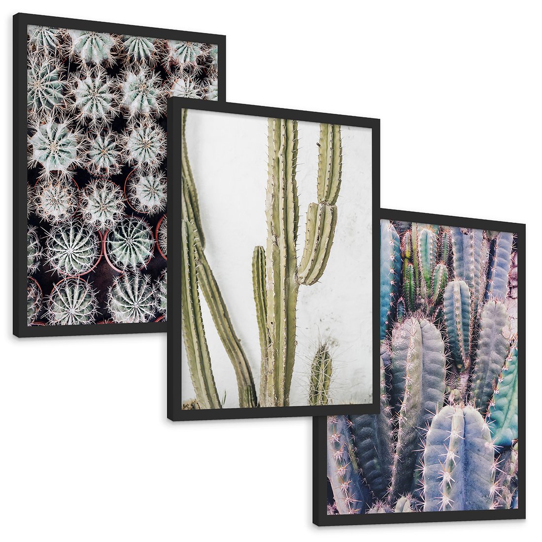 Zestaw obrazy w ramie, plakaty - kaktusy, rośliny, kolce - rama czarna