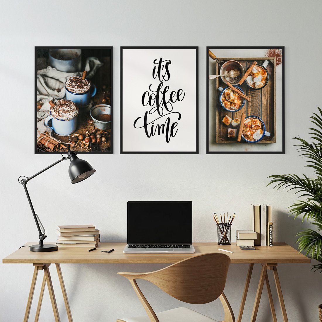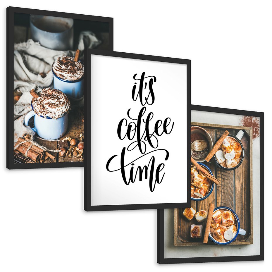 Zestaw obrazy w ramie, plakaty - kawa, kakao, napój - rama czarna