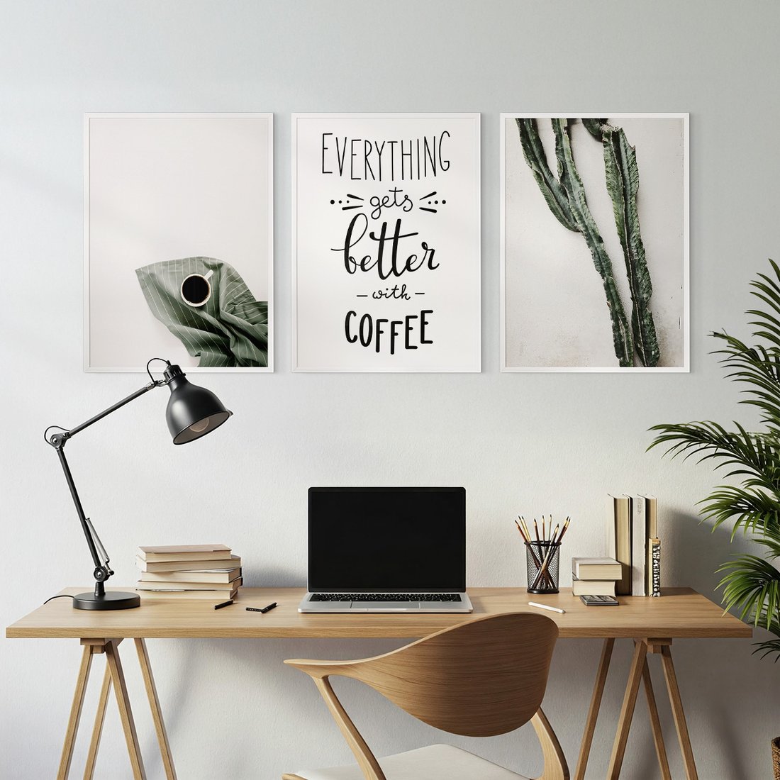 - Zestaw obrazy w ramie, plakaty - kawa, kaktus, napisy