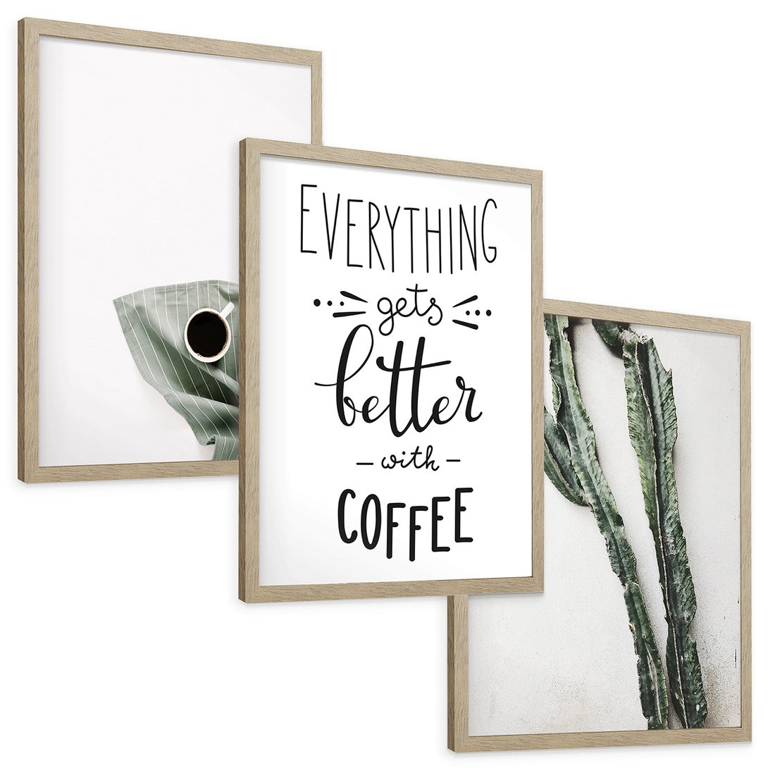 - Zestaw obrazy w ramie, plakaty - kawa, kaktus, napisy