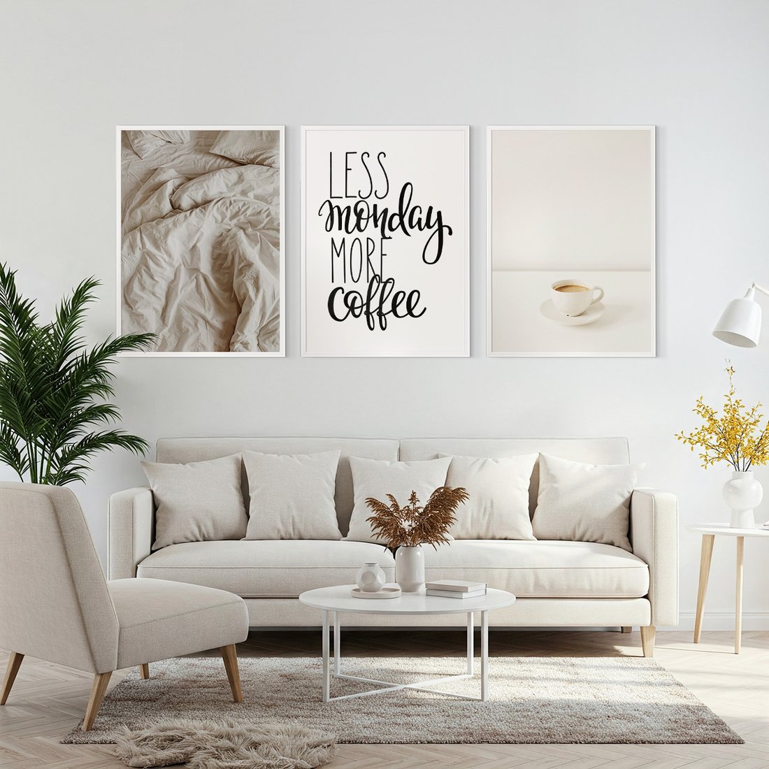 - Zestaw obrazy w ramie, plakaty - kawa, łóżko, minimalizm