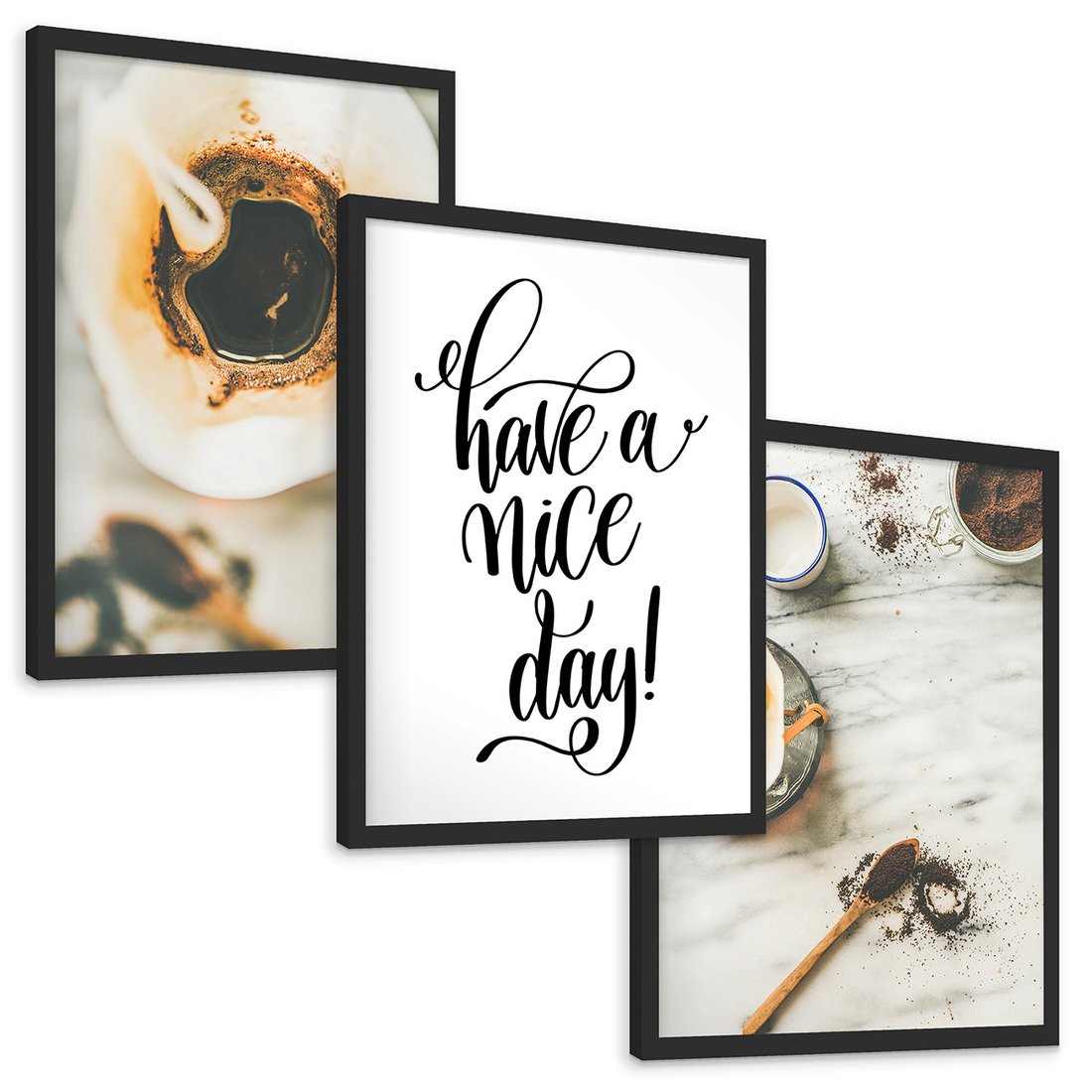 Zestaw obrazy w ramie, plakaty - kawa, napój, filiżanka - rama czarna