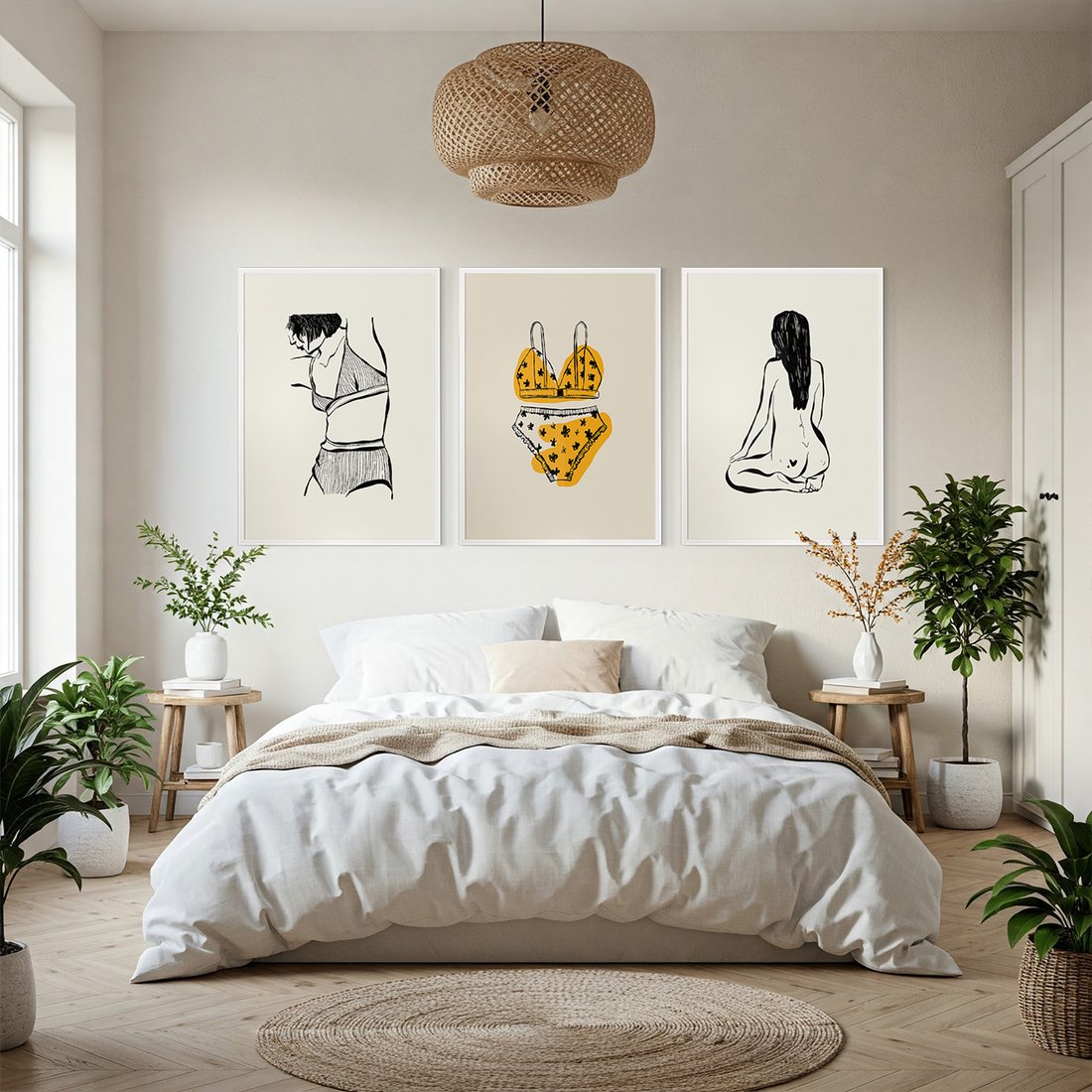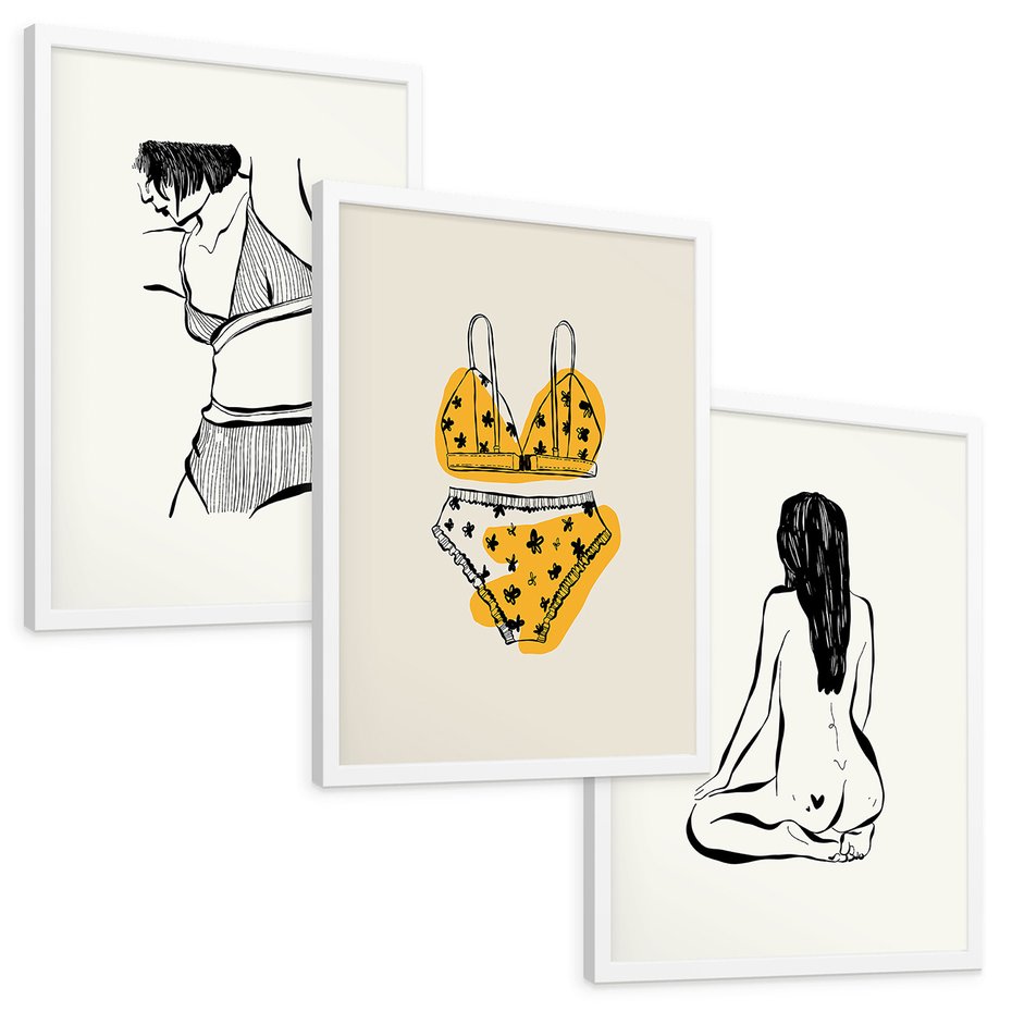 - Zestaw obrazy w ramie, plakaty - kobieta, bielizna, ciało