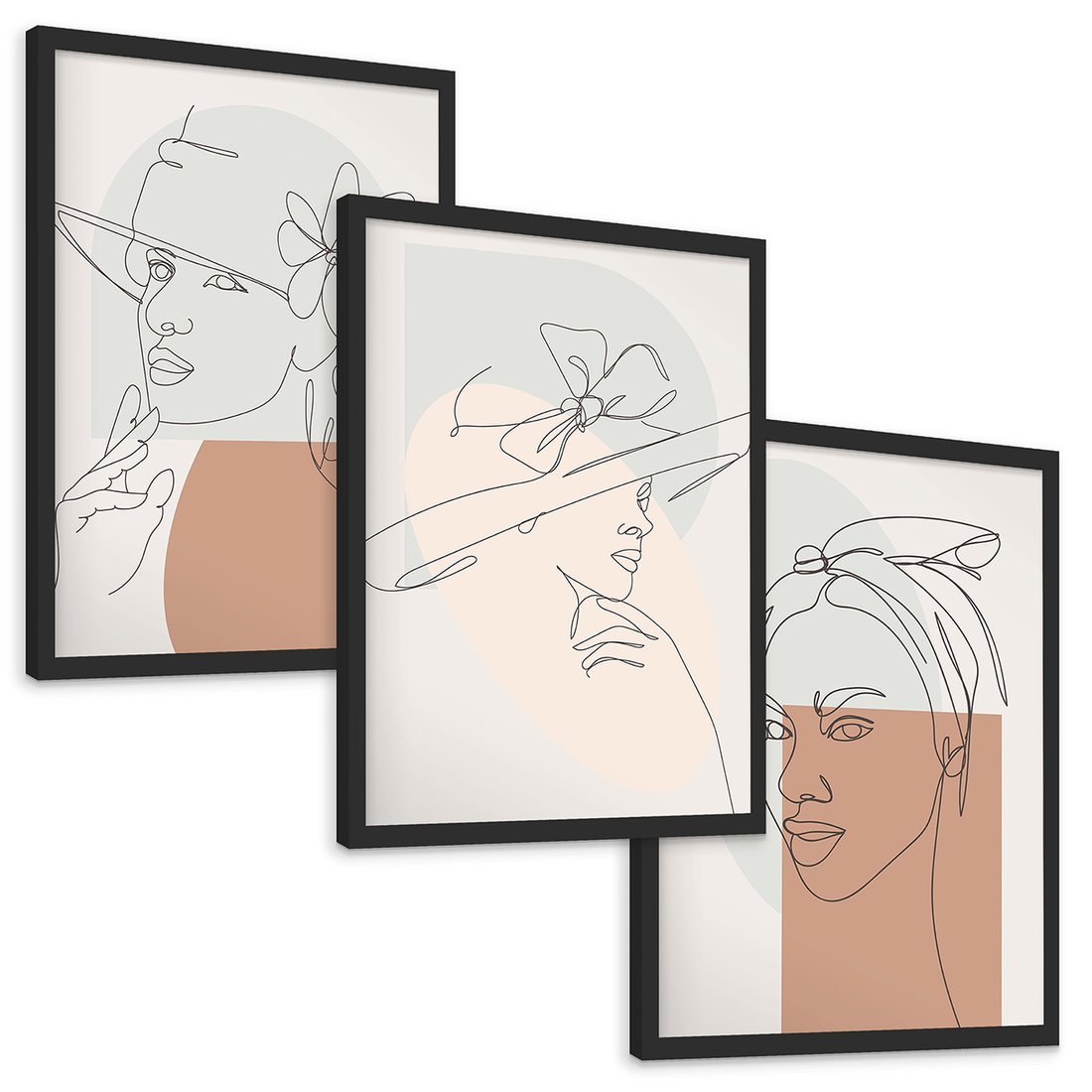 Zestaw obrazy w ramie, plakaty - kobieta, kapelusz, portret - rama czarna