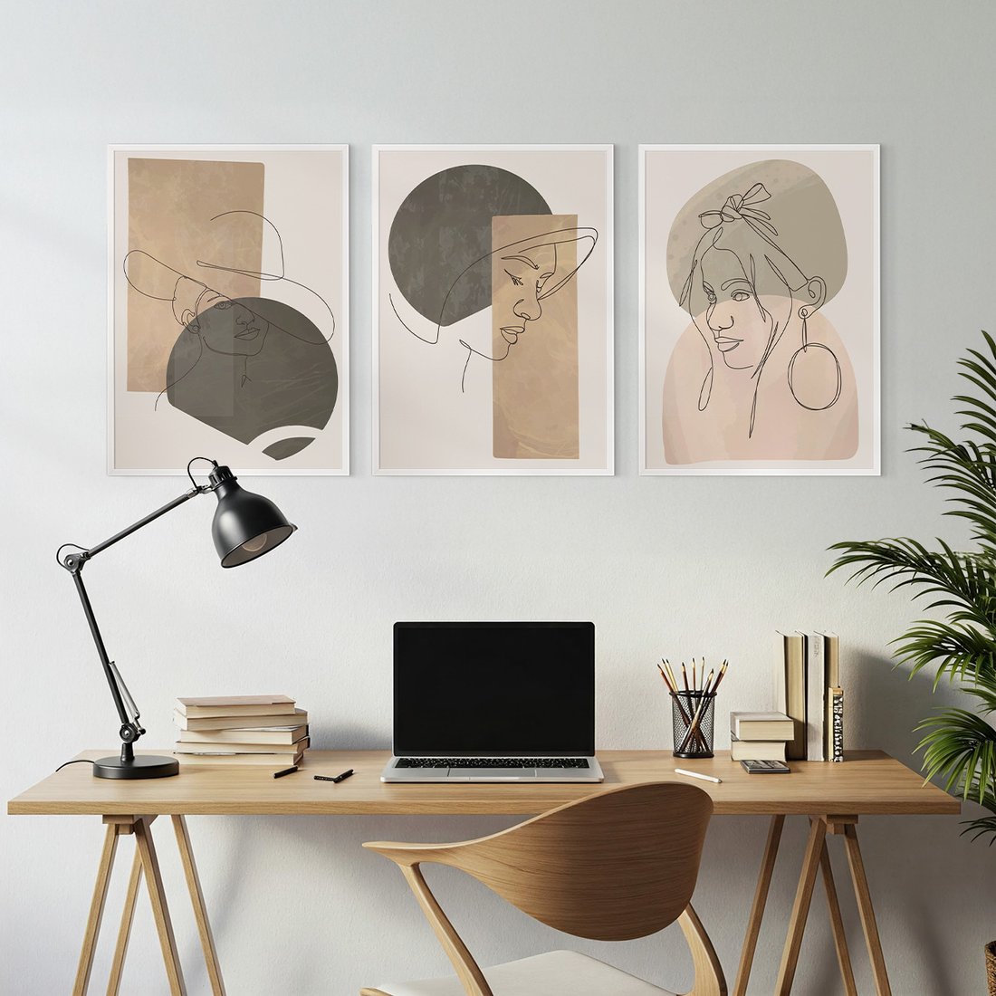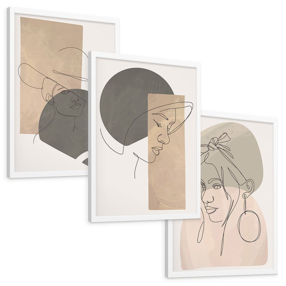 Zestaw obrazy w ramie, plakaty - kobieta, portret, abstrakcja - rama biała