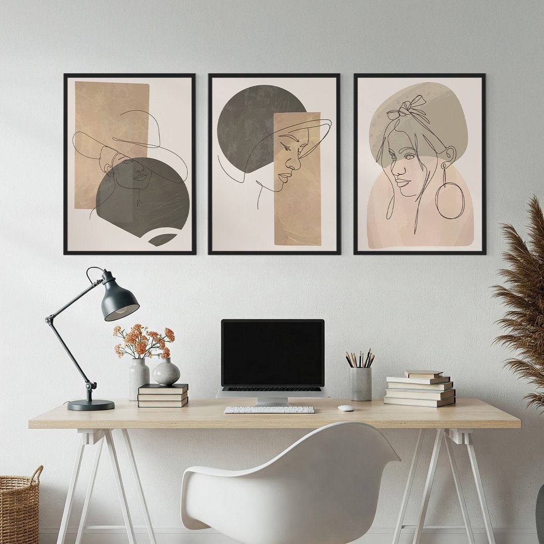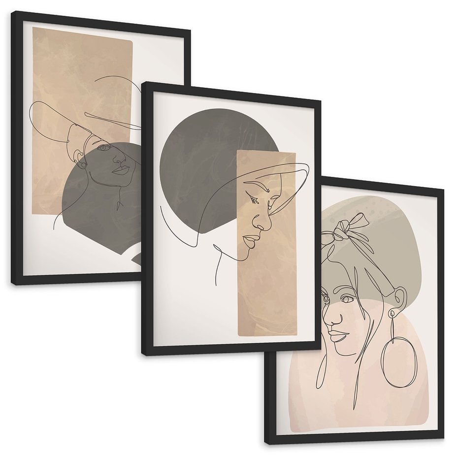 Zestaw obrazy w ramie, plakaty - kobieta, portret, abstrakcja - rama czarna
