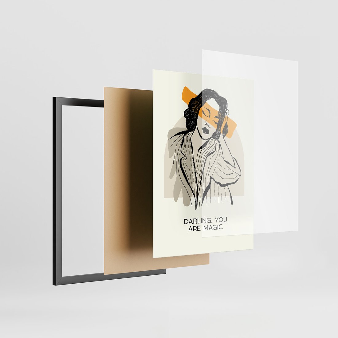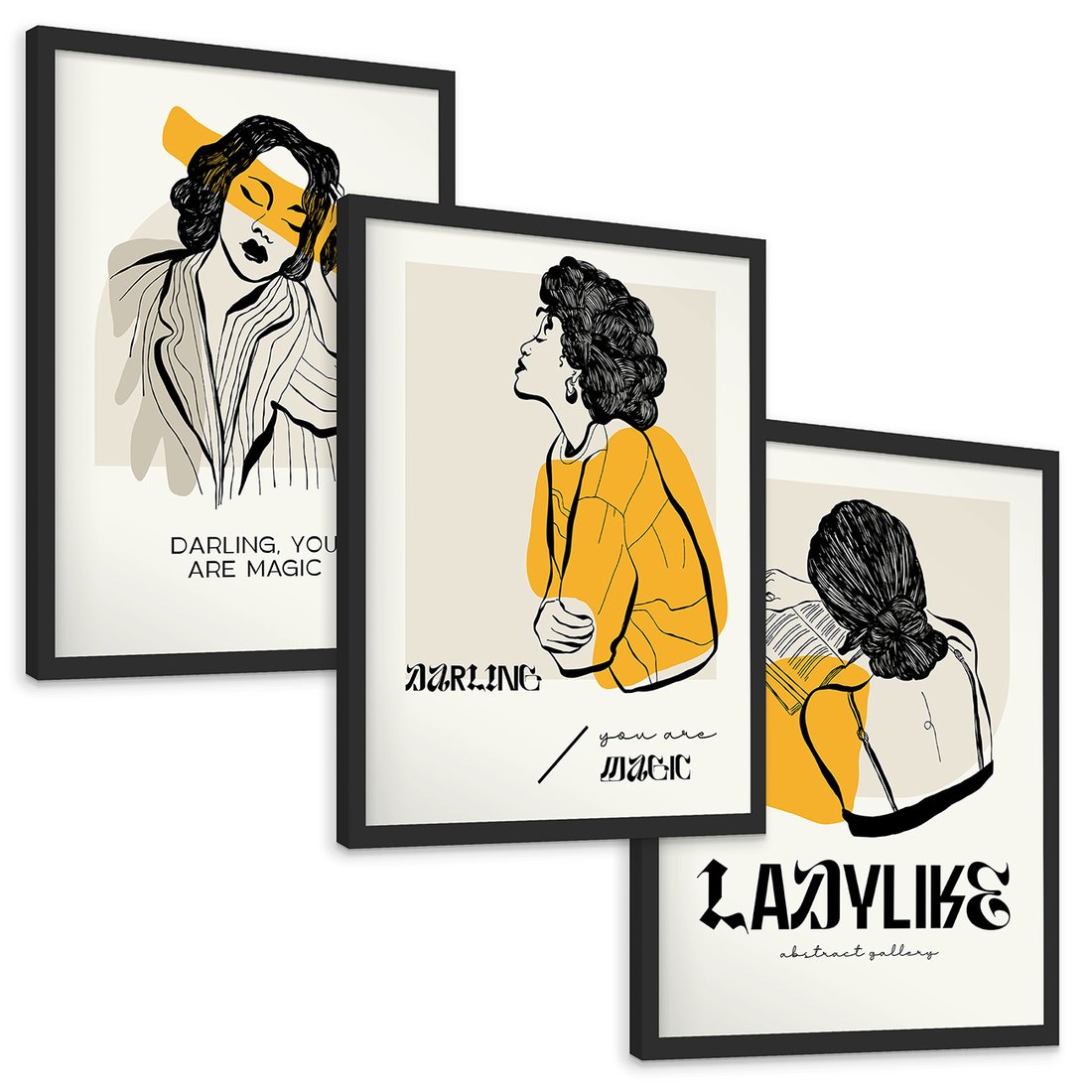 Zestaw obrazy w ramie, plakaty - kobieta, rysunek, portret - rama czarna