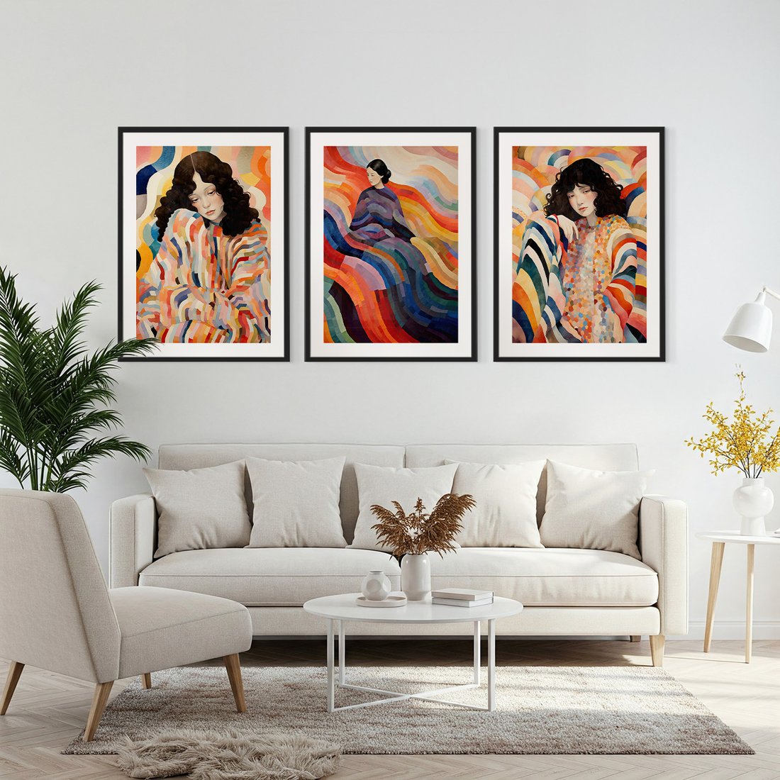 - Zestaw obrazy w ramie, plakaty - kobieta, wzory, kolory,