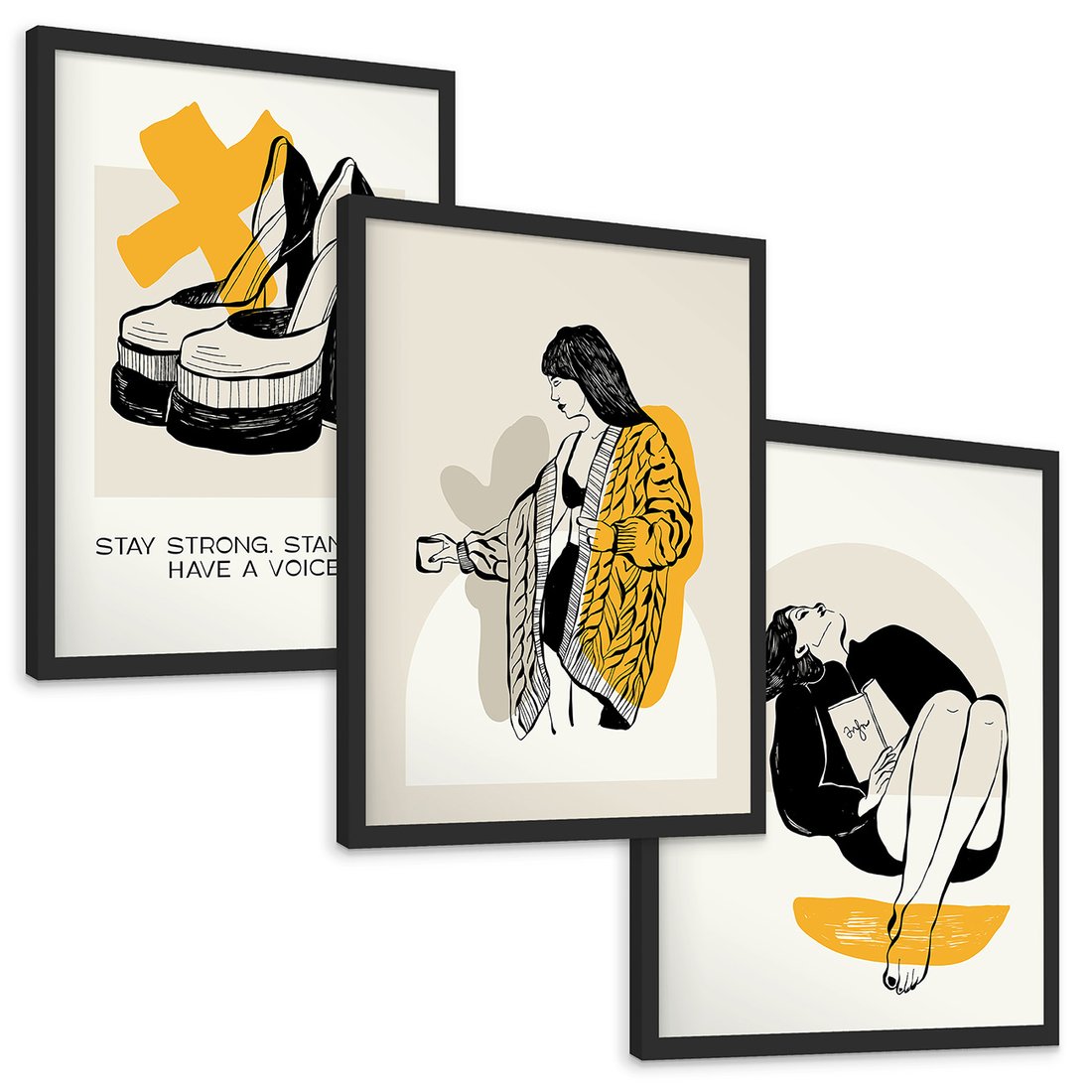 Zestaw obrazy w ramie, plakaty - kobiety, buty, moda - rama czarna