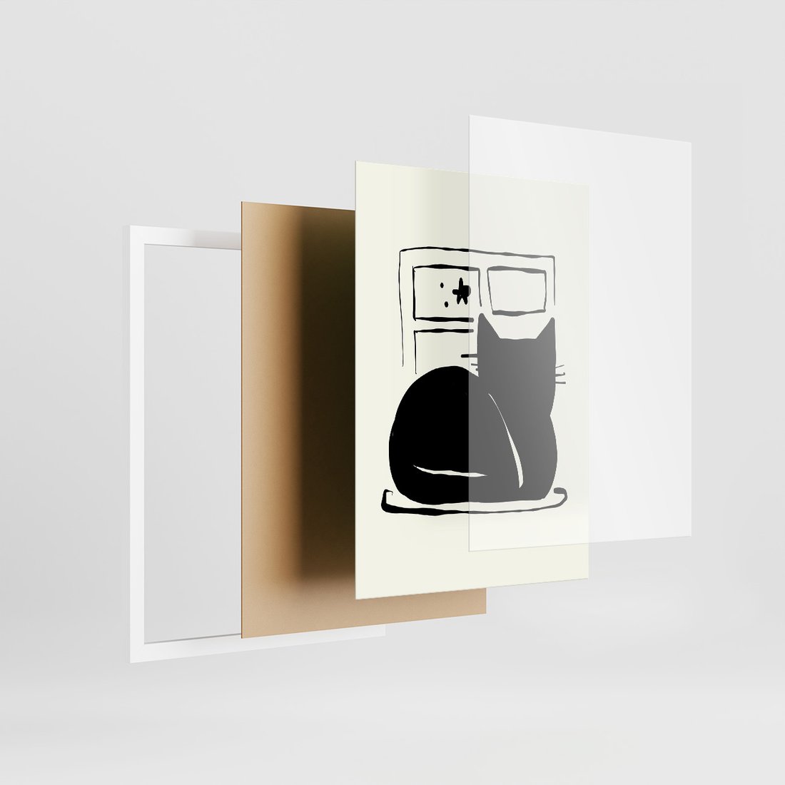 - Zestaw obrazy w ramie, plakaty - kot, ilustracja, grafika