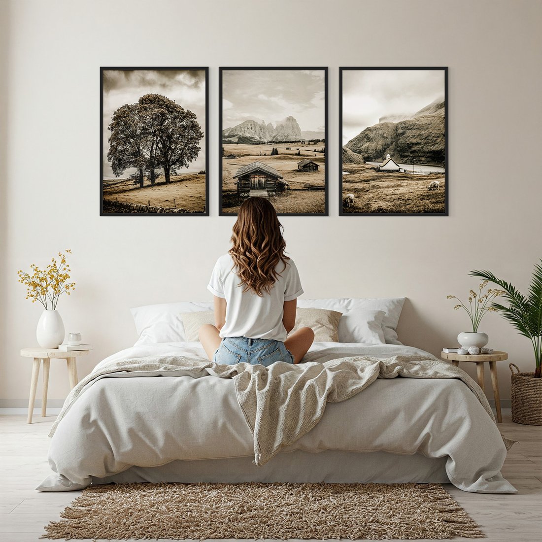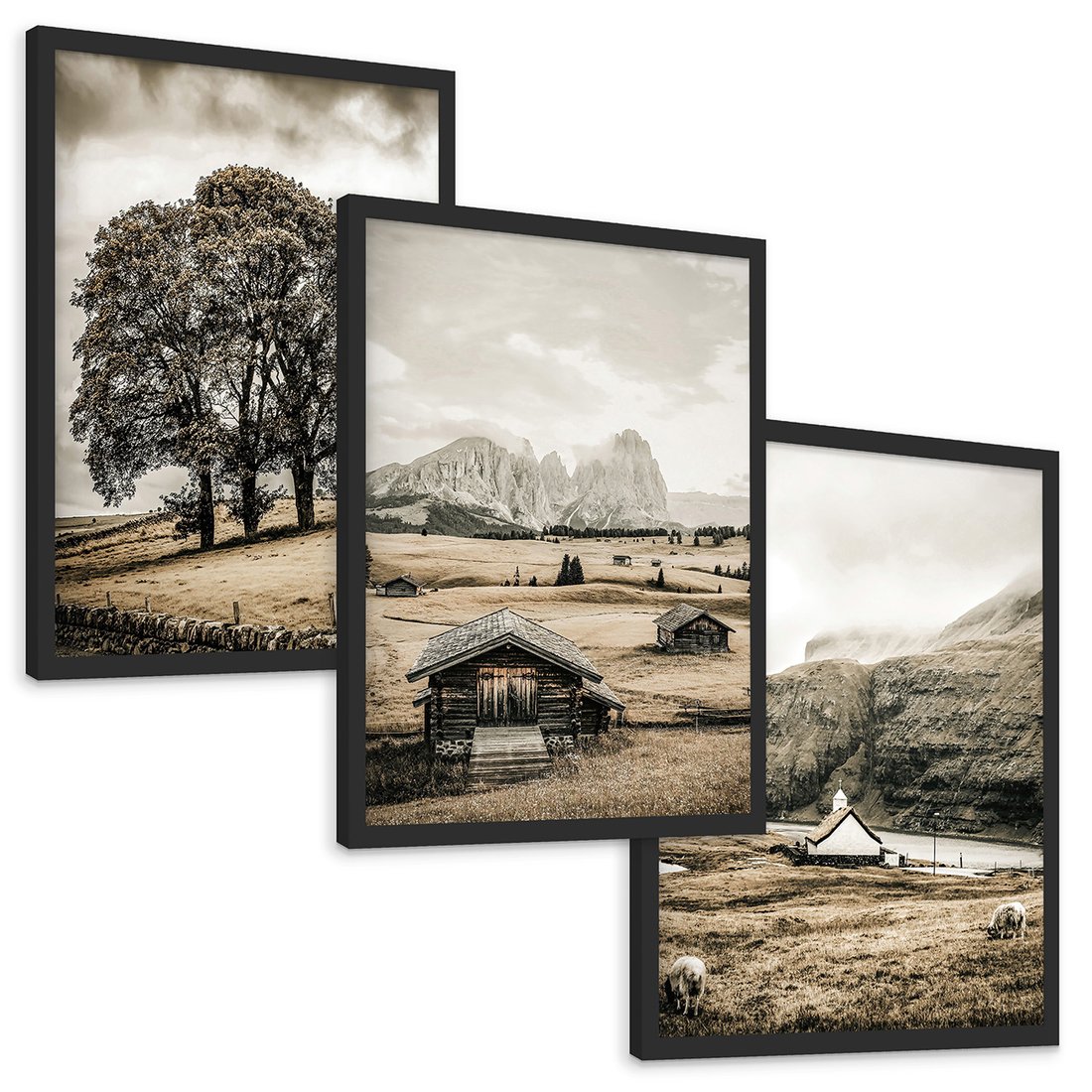 - Zestaw obrazy w ramie, plakaty - krajobraz, góry, drzewa