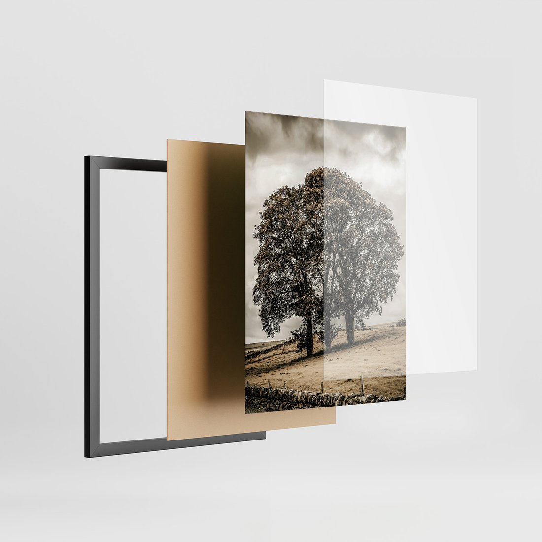 Zestaw obrazy w ramie, plakaty - krajobraz, góry, drzewa - rama czarna