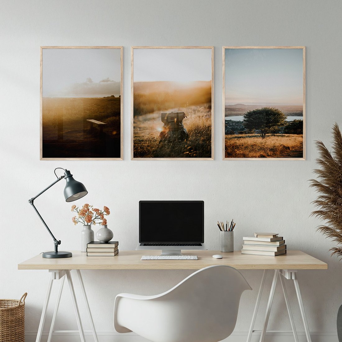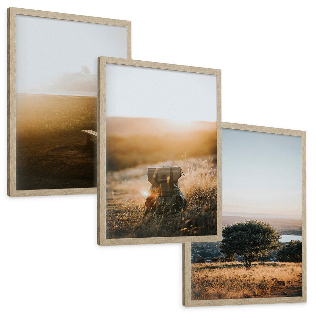 Zestaw obrazy w ramie, plakaty - krajobraz, natura, zachód słońca - rama drewno