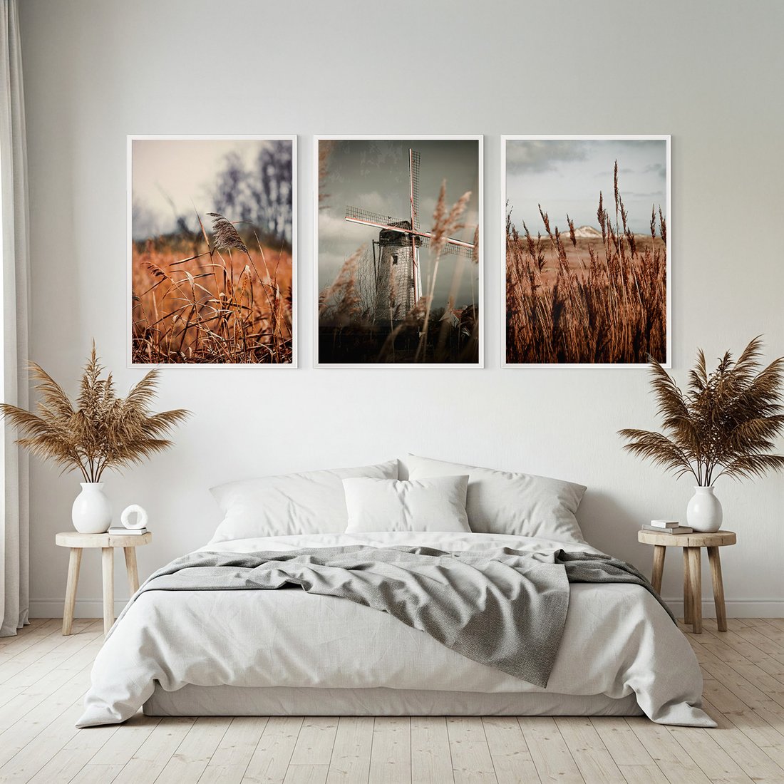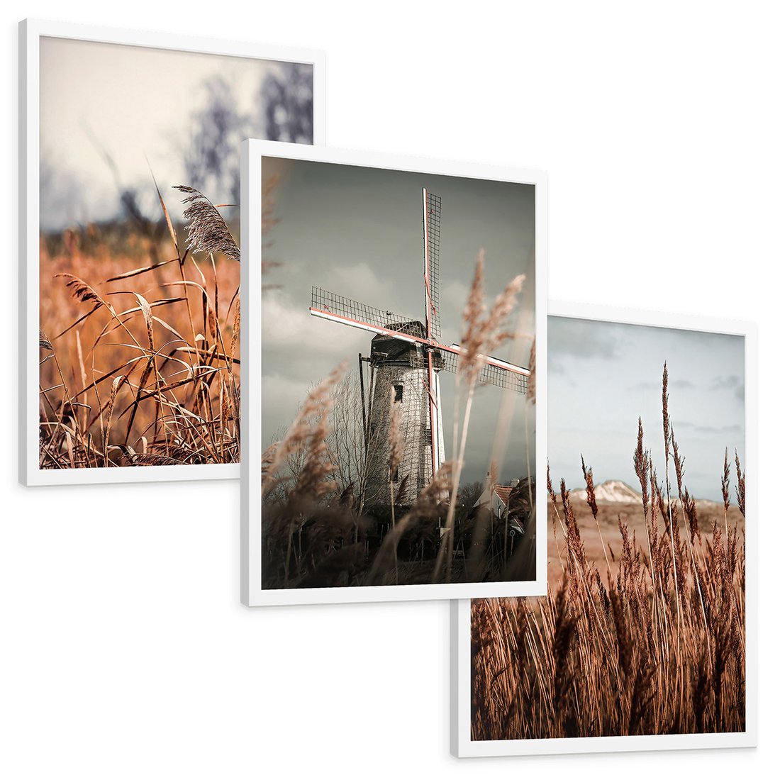 Zestaw obrazy w ramie, plakaty - krajobraz, wiatrak, natura - rama biała