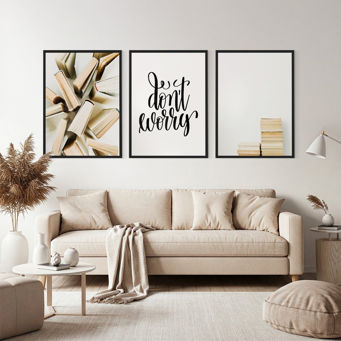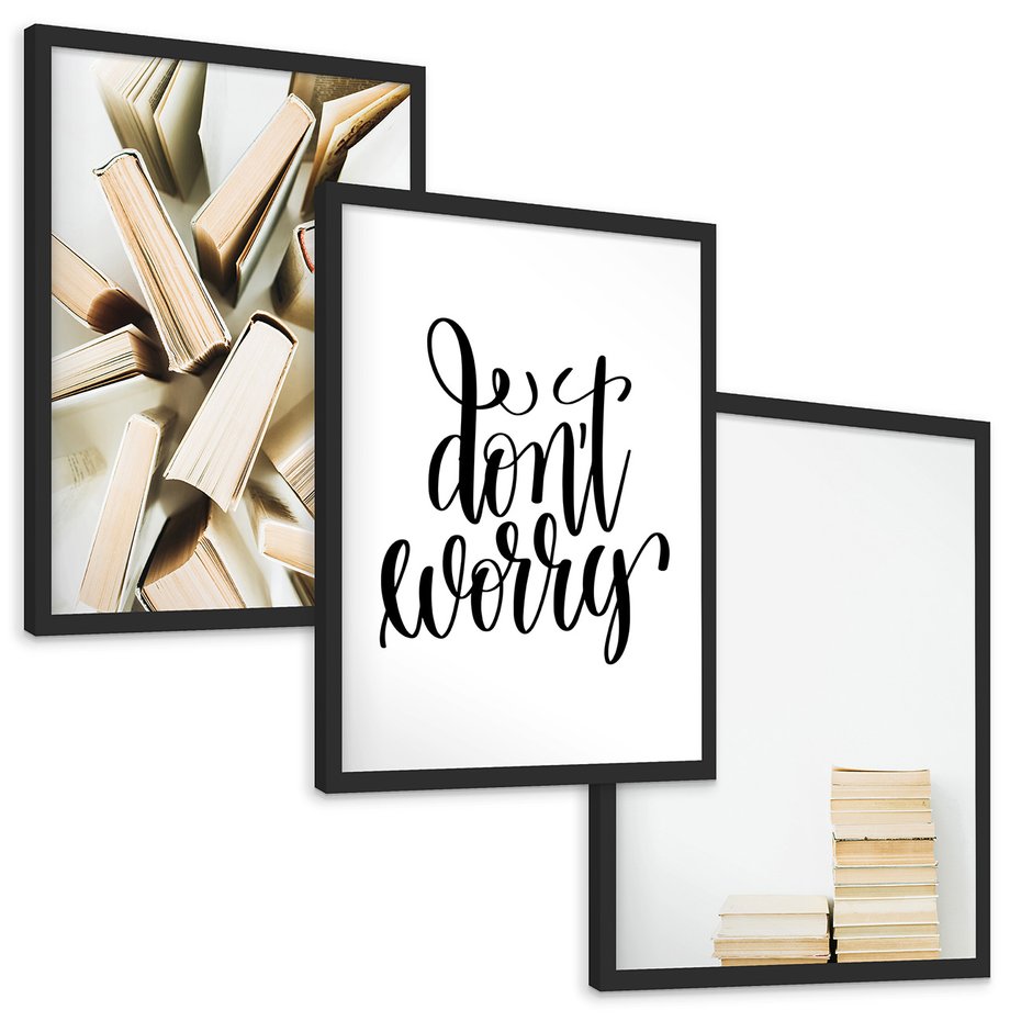 Zestaw obrazy w ramie, plakaty - książki, edukacja, tekst - rama czarna