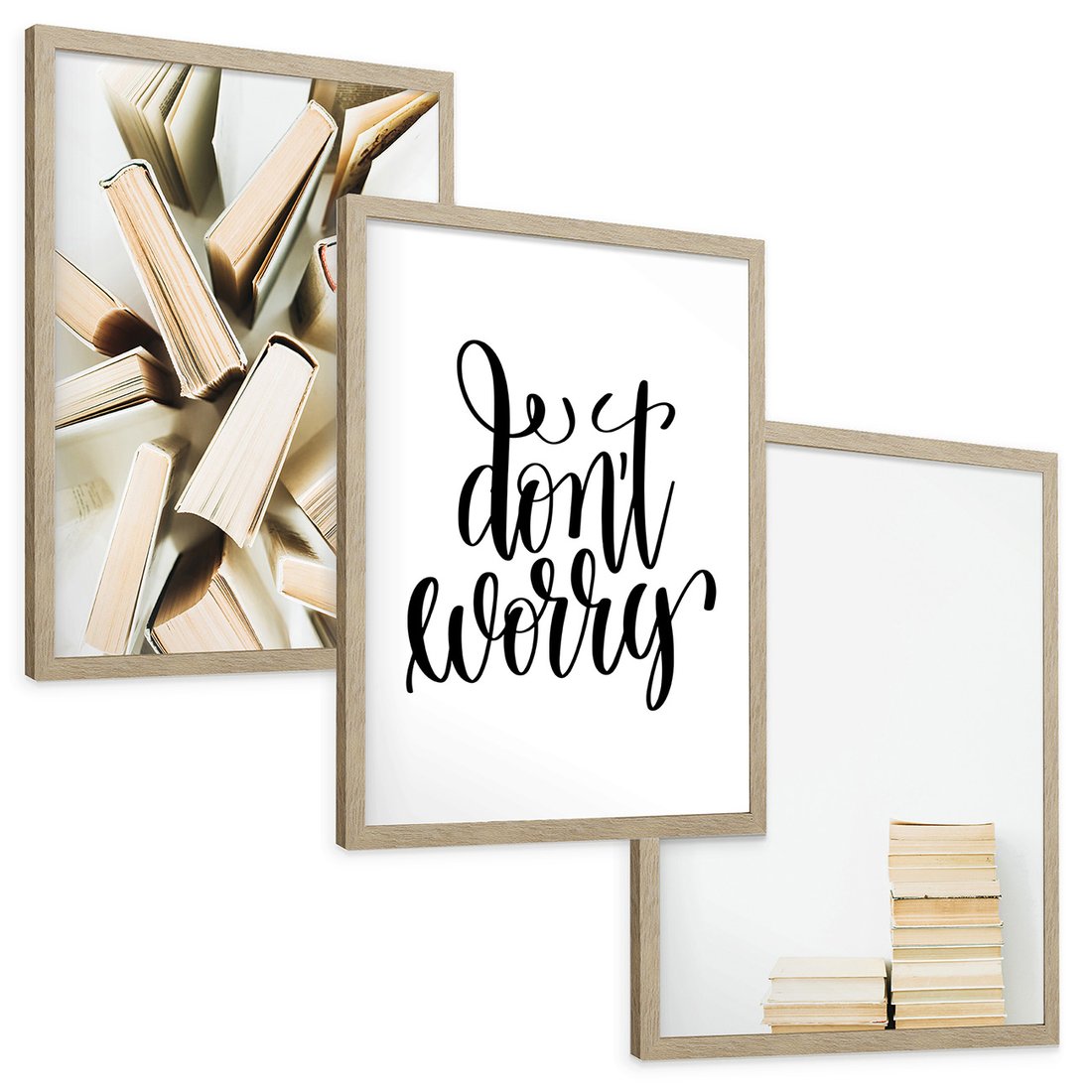 Zestaw obrazy w ramie, plakaty - książki, edukacja, tekst - rama drewno