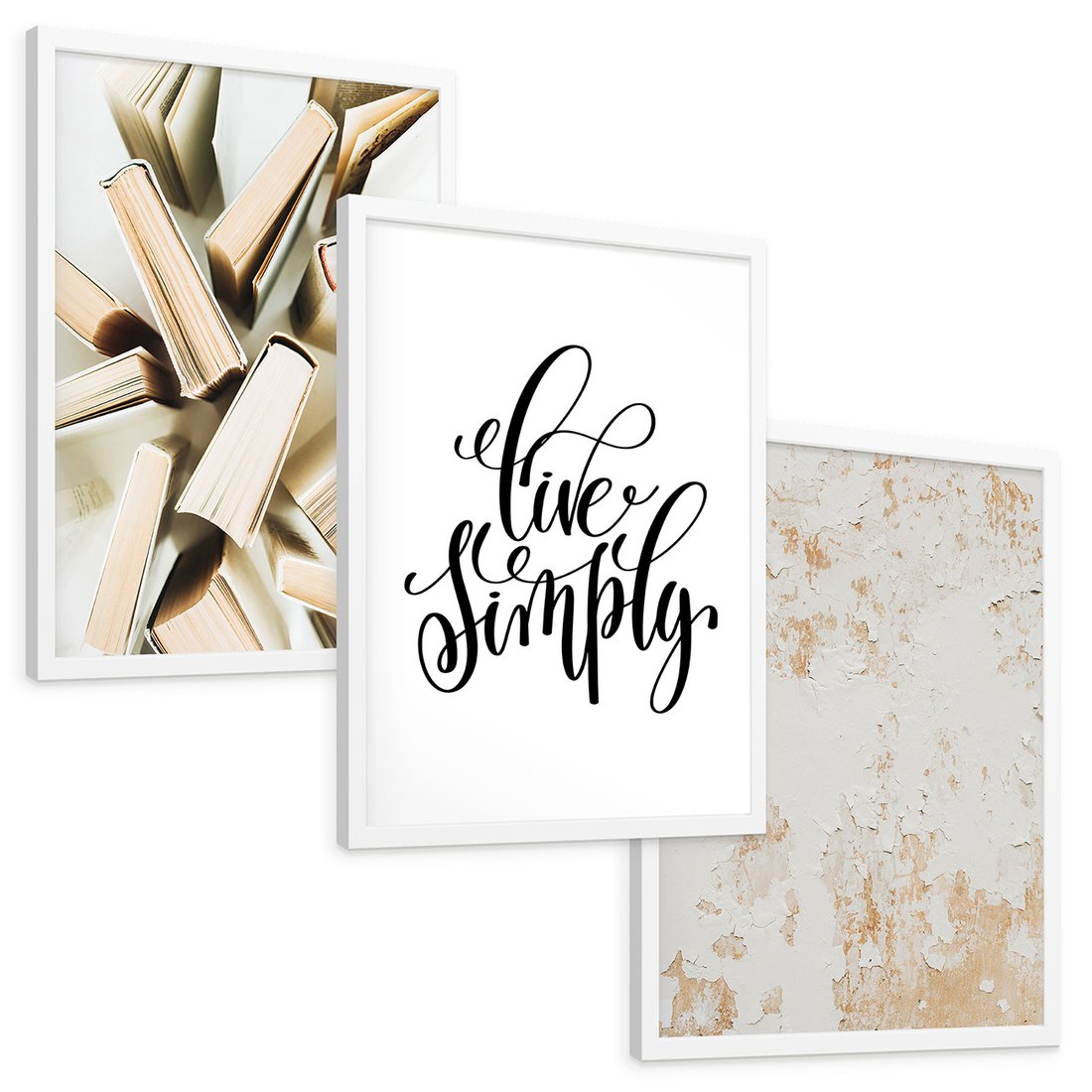 Zestaw obrazy w ramie, plakaty - książki, tekst, ściana - rama biała