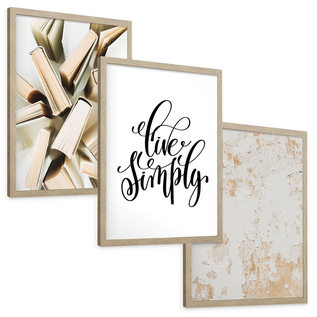 Zestaw obrazy w ramie, plakaty - książki, tekst, ściana - rama drewno