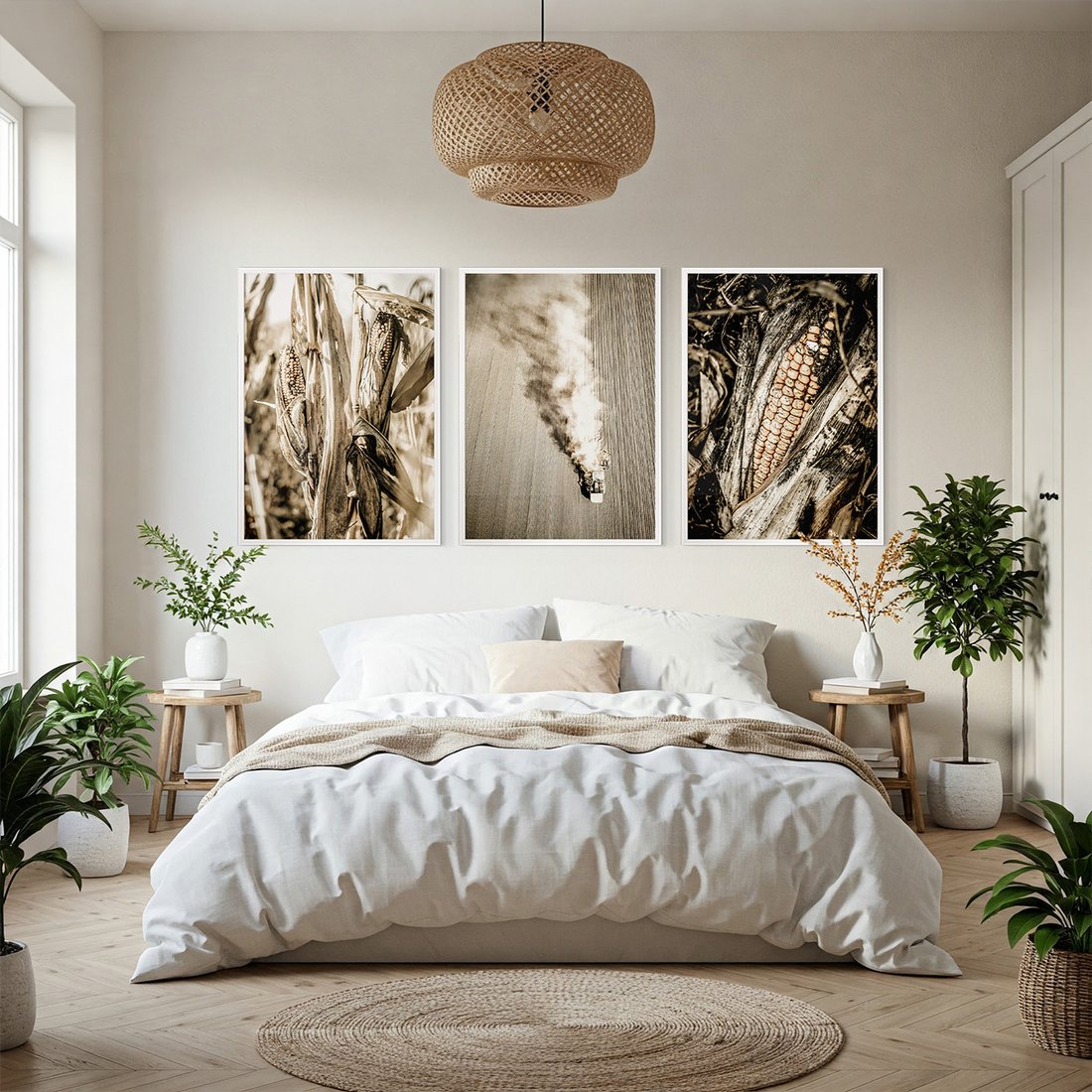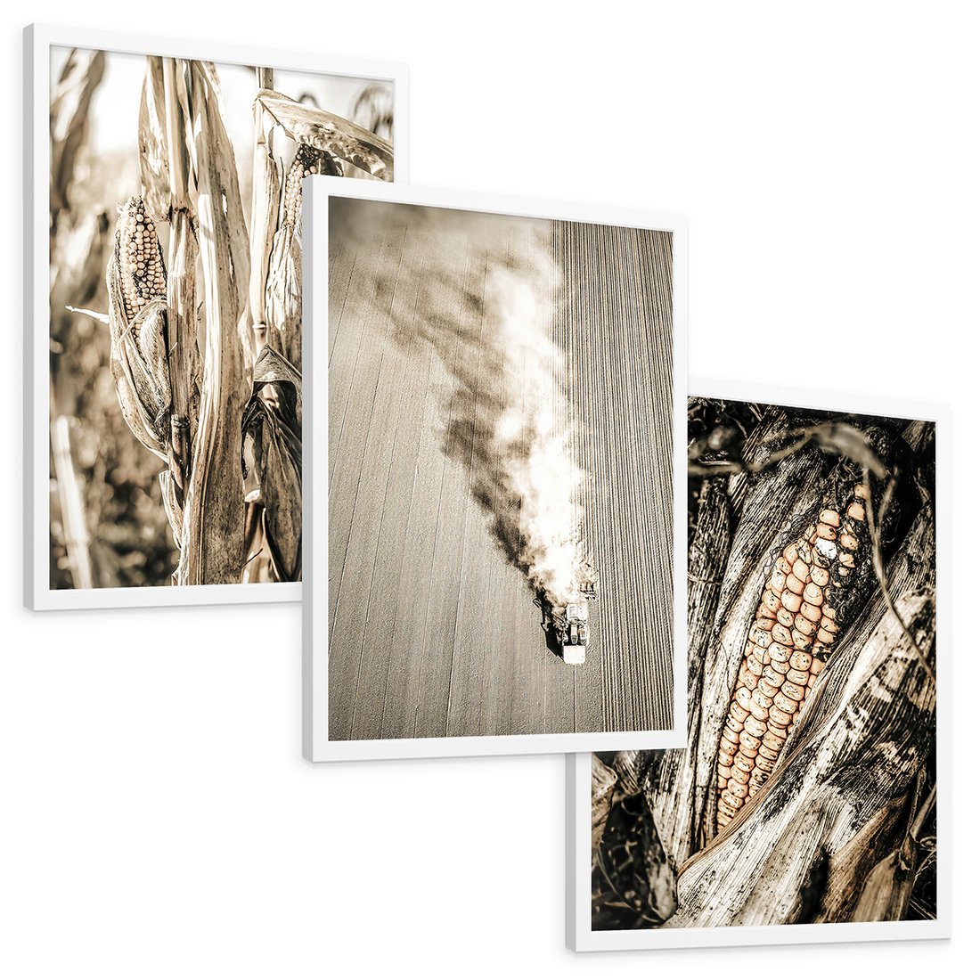 Zestaw obrazy w ramie, plakaty - kukurydza, pole, rolnictwo - rama biała