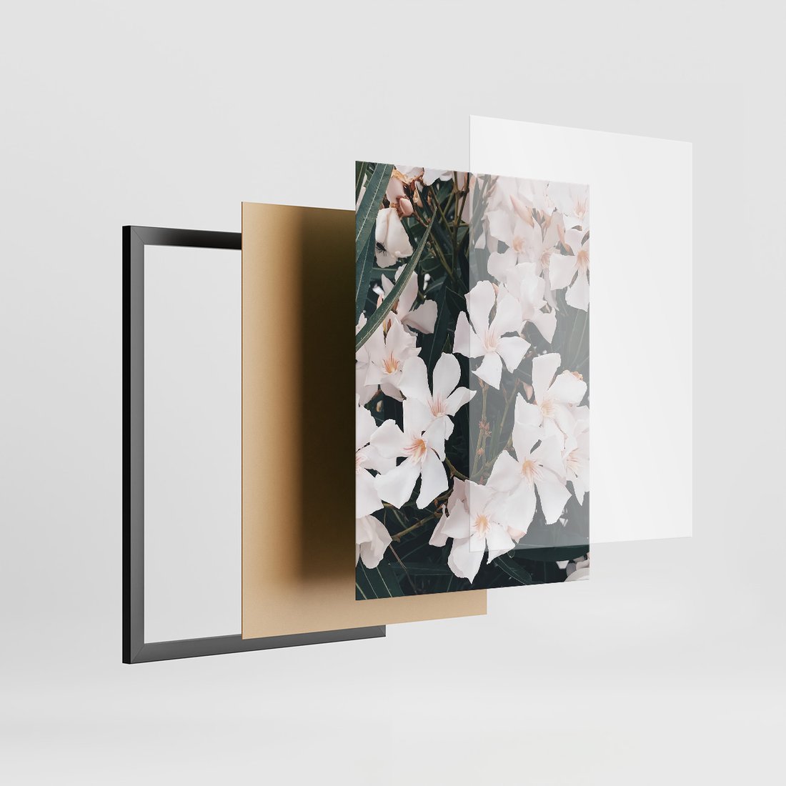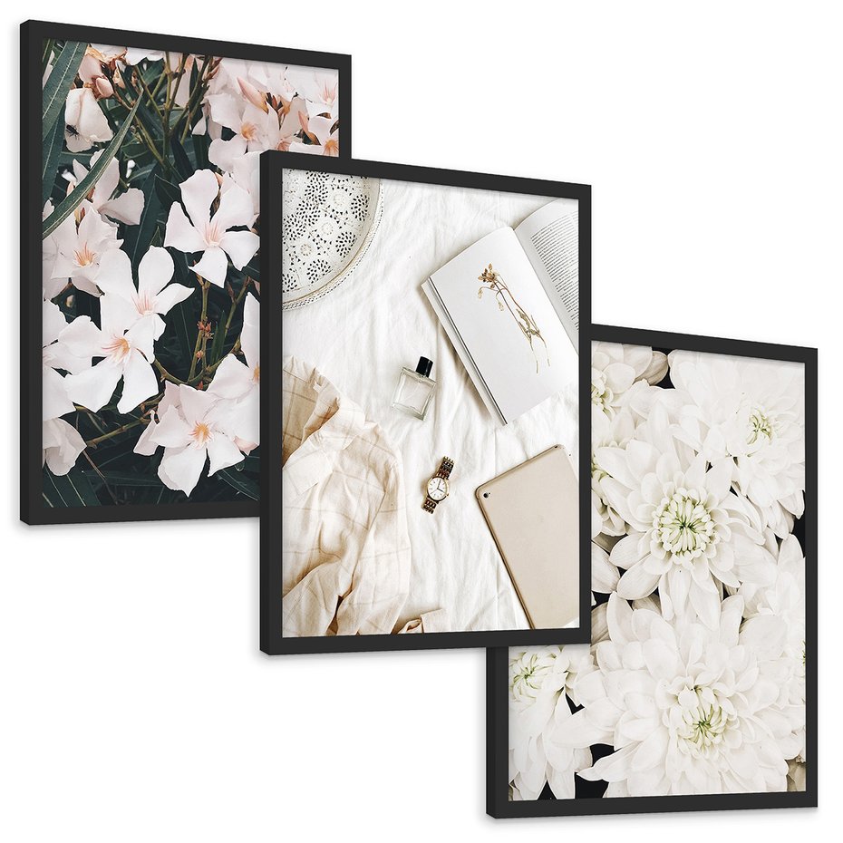 Zestaw obrazy w ramie, plakaty - kwiaty, biały, roślina - rama czarna