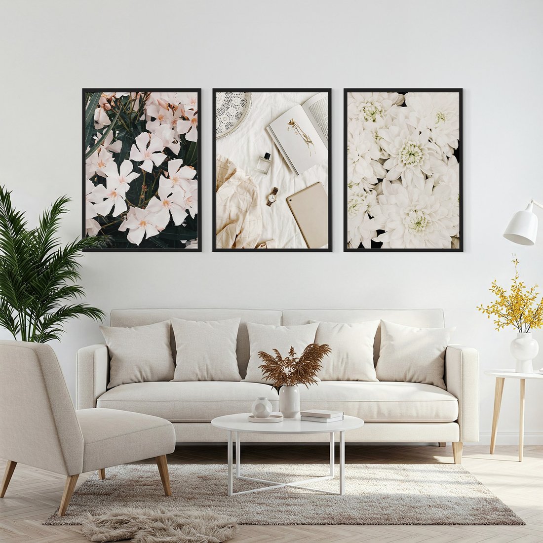 - Zestaw obrazy w ramie, plakaty - kwiaty, biały, roślina