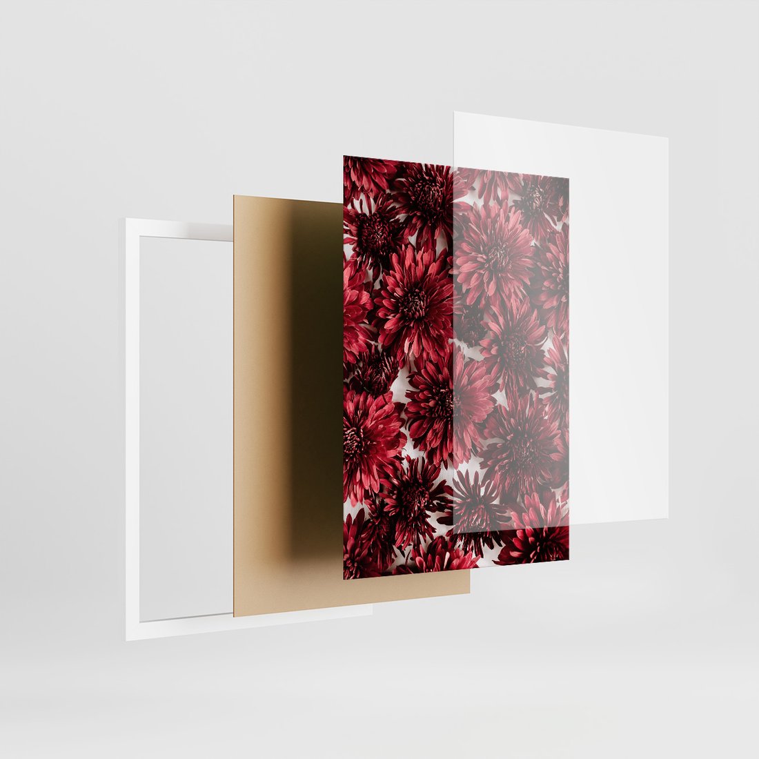 Zestaw obrazy w ramie, plakaty - kwiaty, okno, typografia - rama biała
