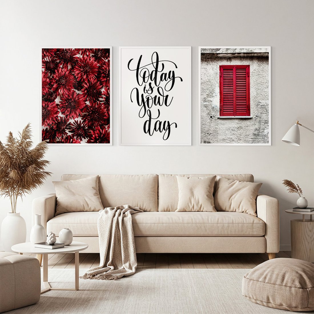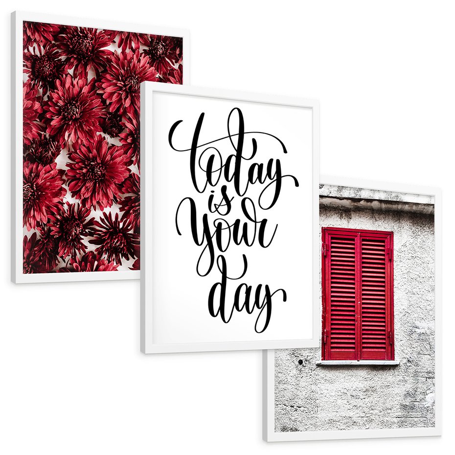 - Zestaw obrazy w ramie, plakaty - kwiaty, okno, typografia