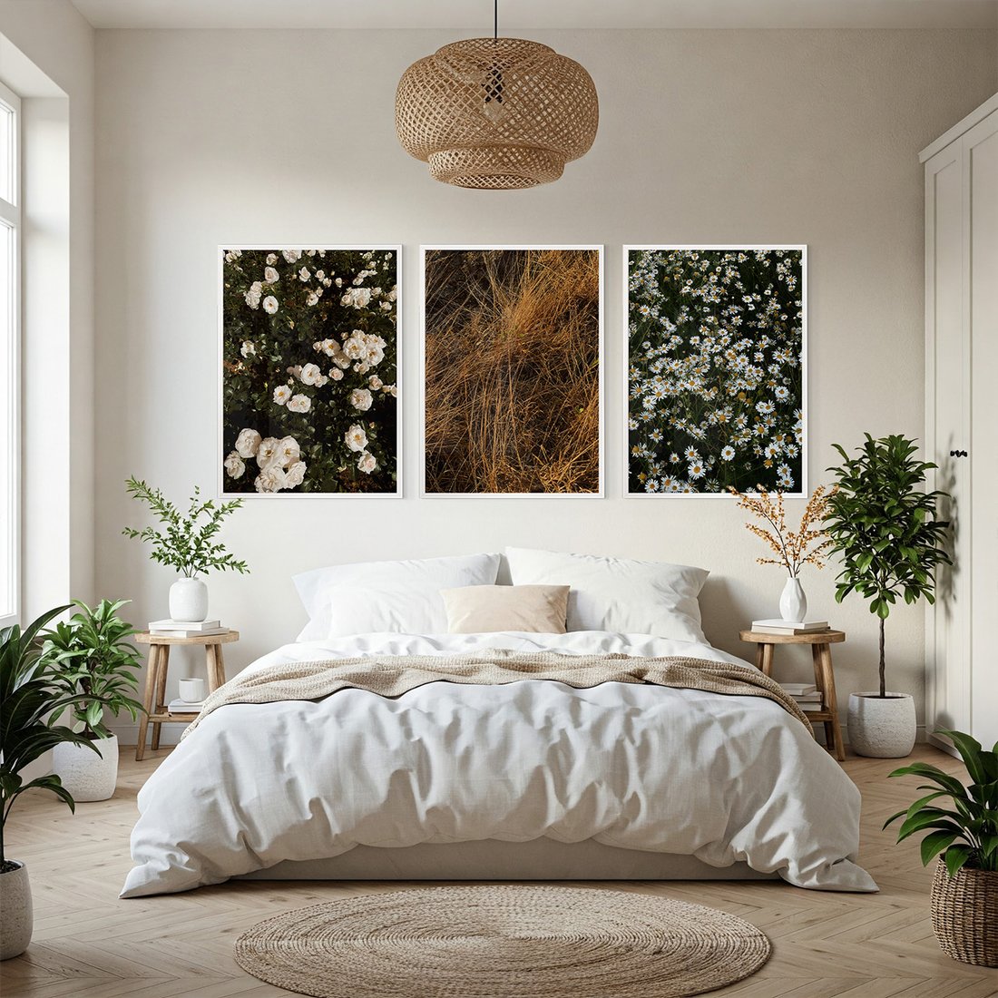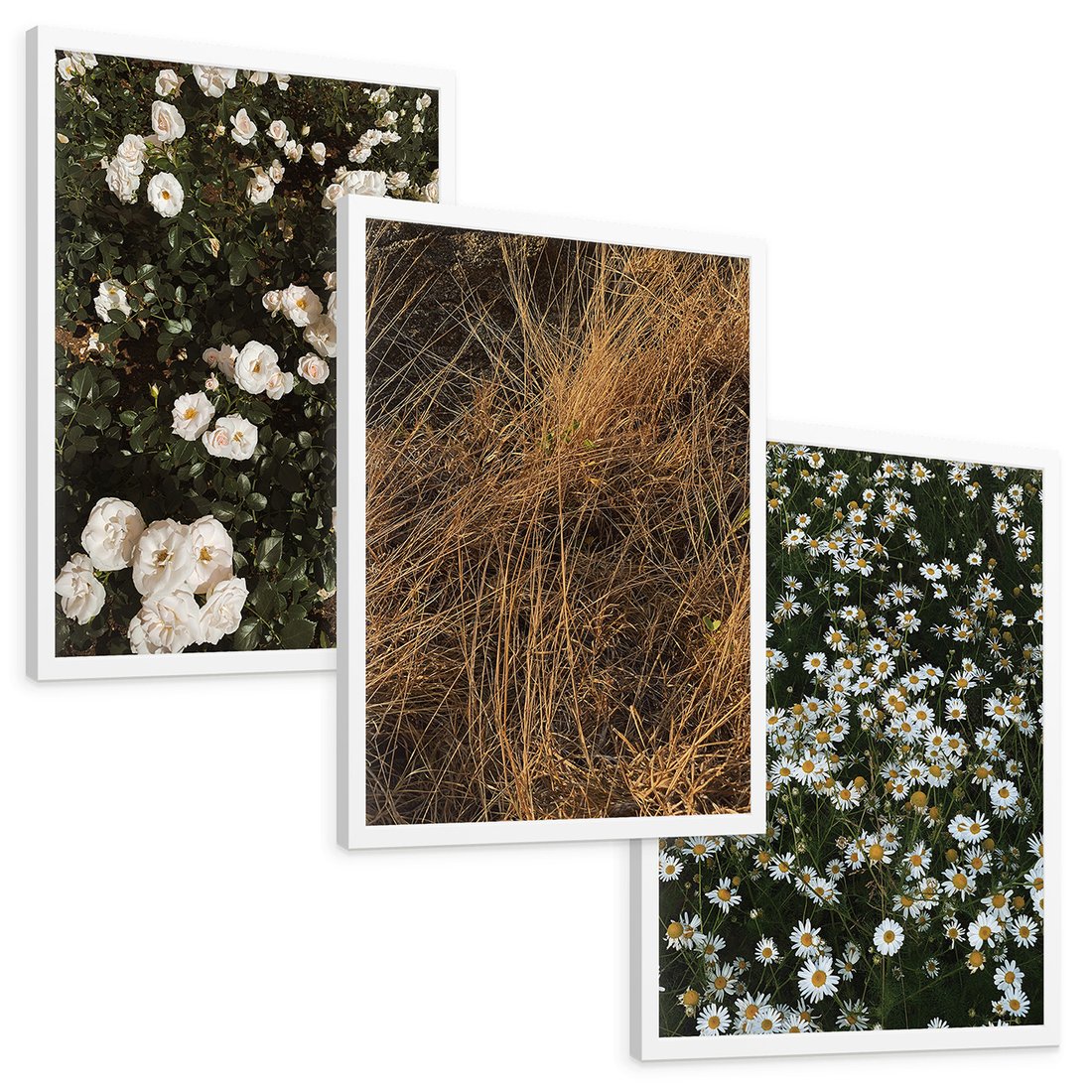 Zestaw obrazy w ramie, plakaty - kwiaty, rośliny, natura - rama biała