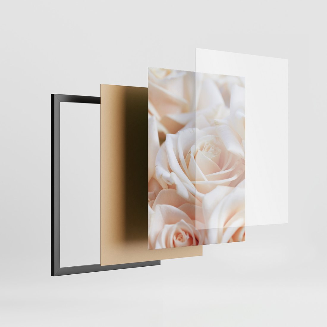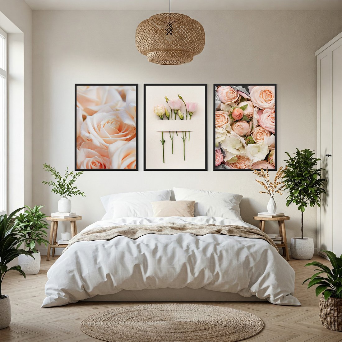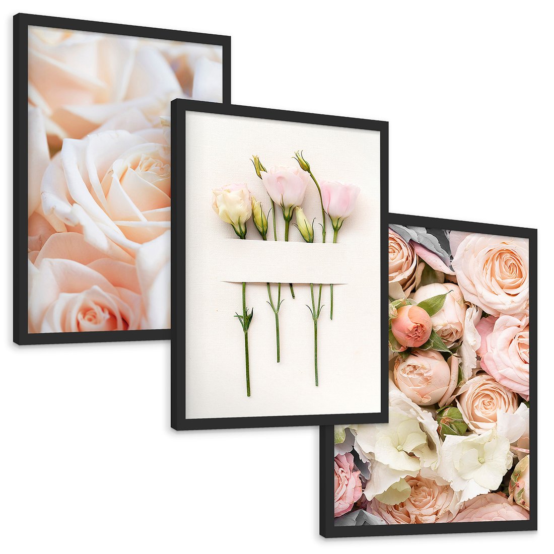 Zestaw obrazy w ramie, plakaty - kwiaty, róże, pastelowe - rama czarna