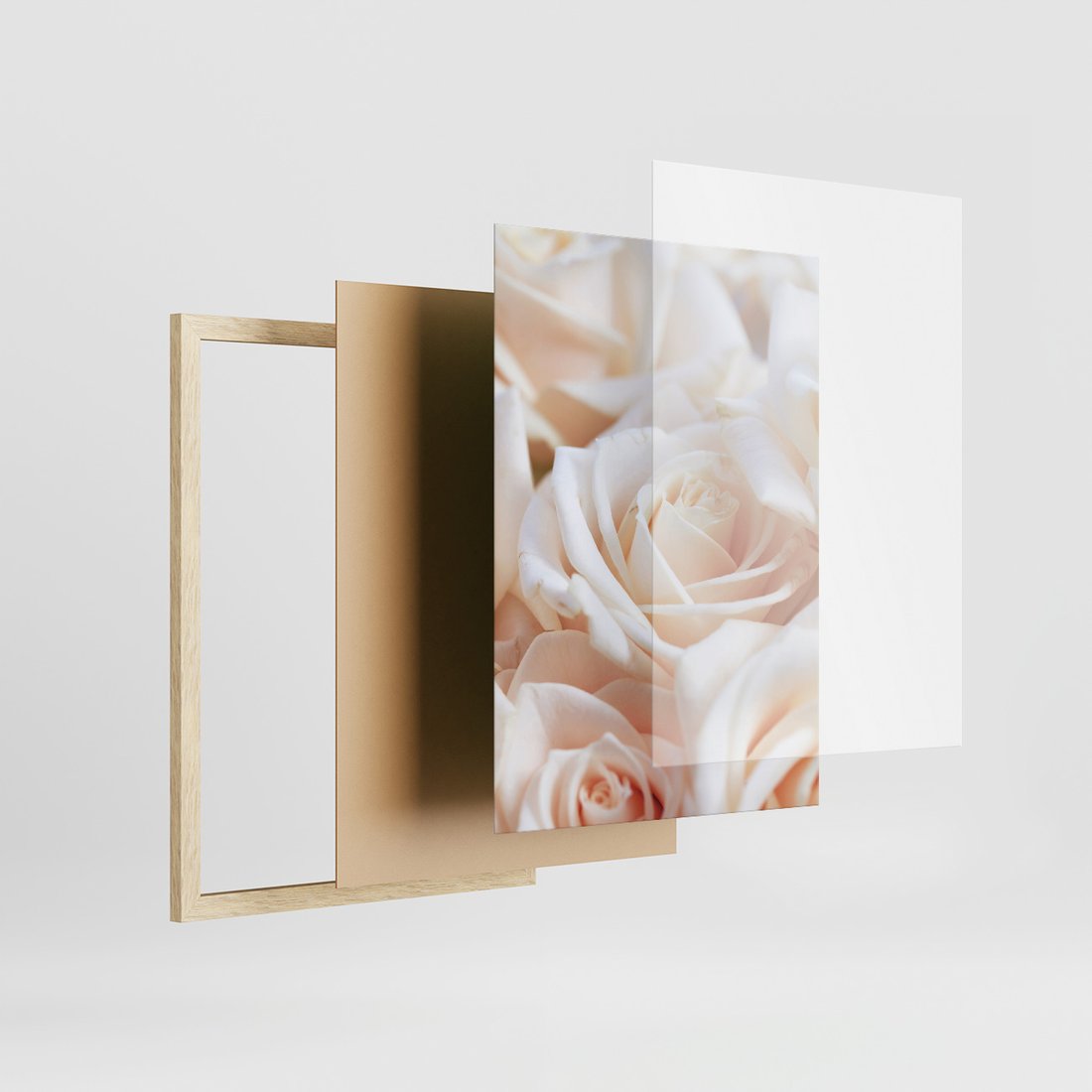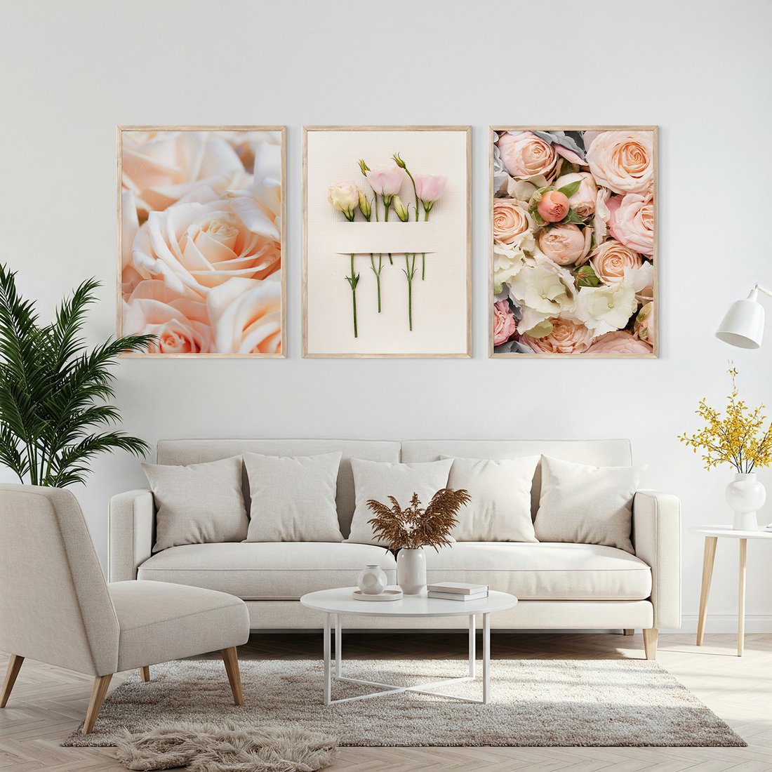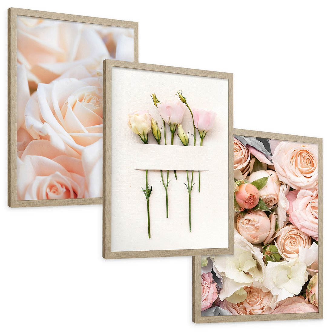 Zestaw obrazy w ramie, plakaty - kwiaty, róże, pastelowe - rama drewno