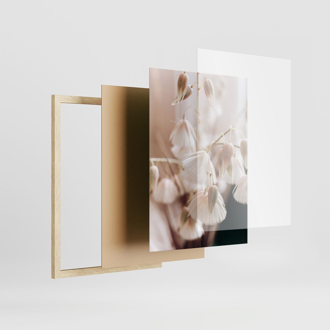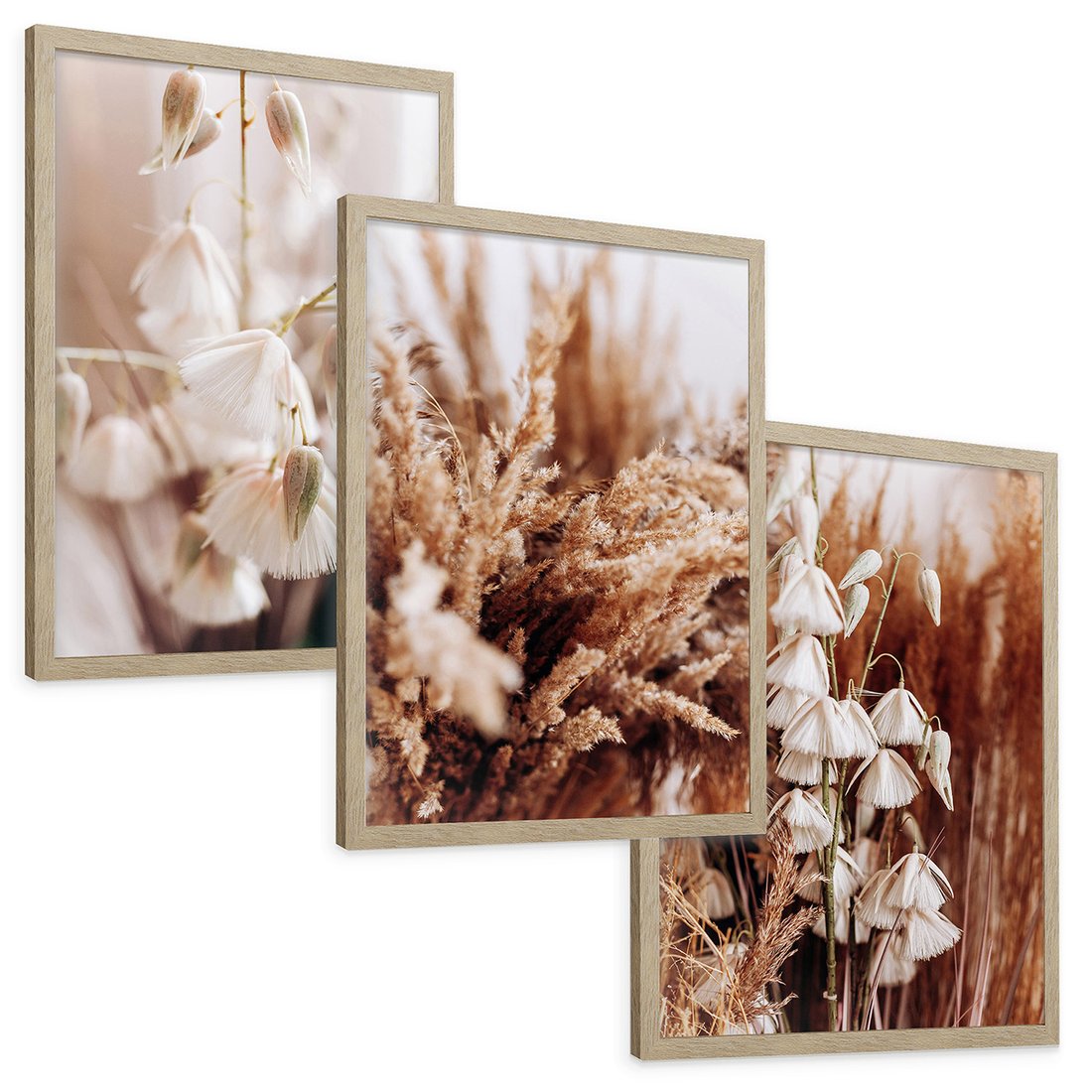 Zestaw obrazy w ramie, plakaty - kwiaty, trawa, pampasowa - rama drewno