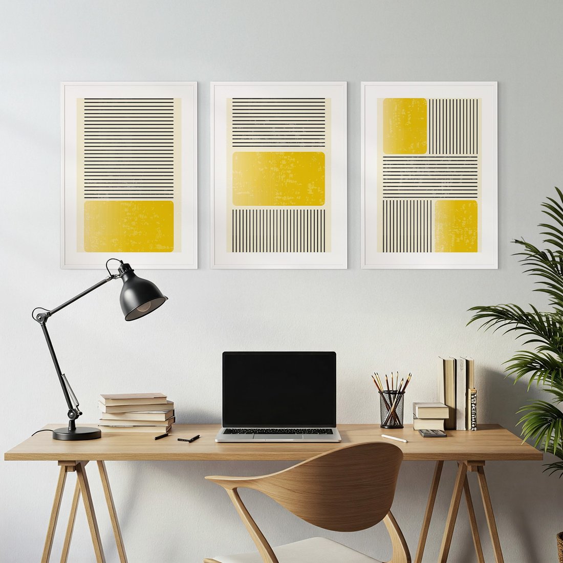Przenieś piękno sztuki do swojego domu dzięki naszemu starannie skomponowanemu produktowi zestaw obrazów linie, geometryczny, abstrakcja. Każdy plakat, oprawiony w elegancką ramę, łączy w sobie estetykę i trwałość. Uniwersalne wzornictwo sprawia, że te dekoracje ścienne doskonale komponują się z różnymi stylami wnętrz, od nowoczesnych po klasyczne. Łatwość montażu pozwala na szybką i bezproblemową metamorfozę Twojej przestrzeni. To również idealny pomysł na wyszukany prezent, który z pewnością zachwyci.