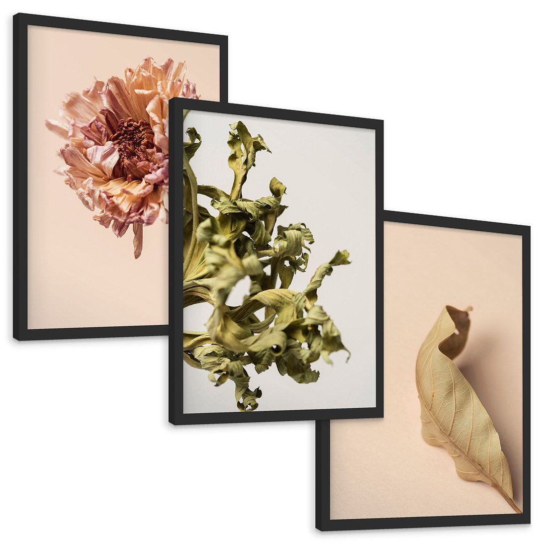 - Zestaw obrazy w ramie, plakaty - liść, kwiat, suchy