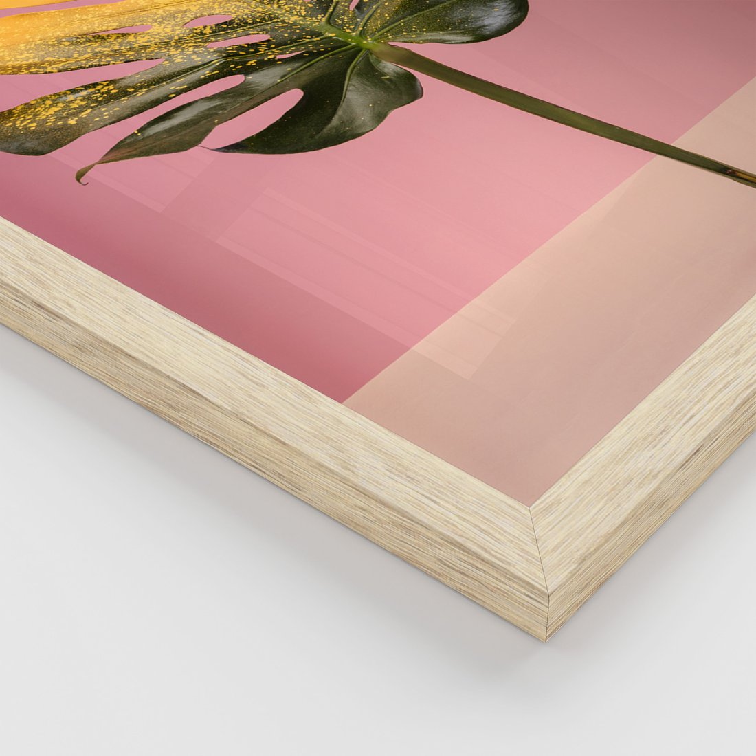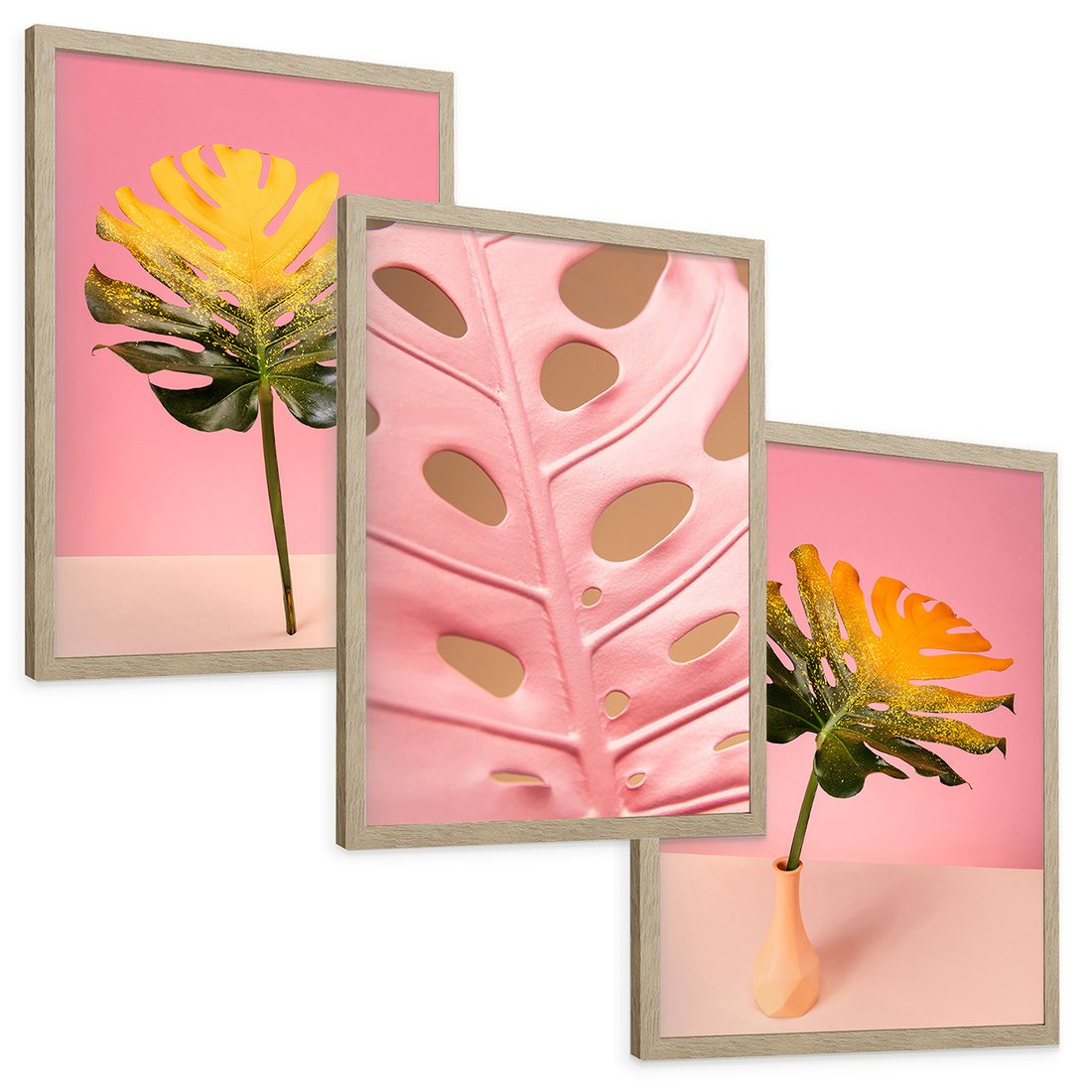 Zestaw obrazy w ramie, plakaty - liść, monstera, roślina - rama drewno