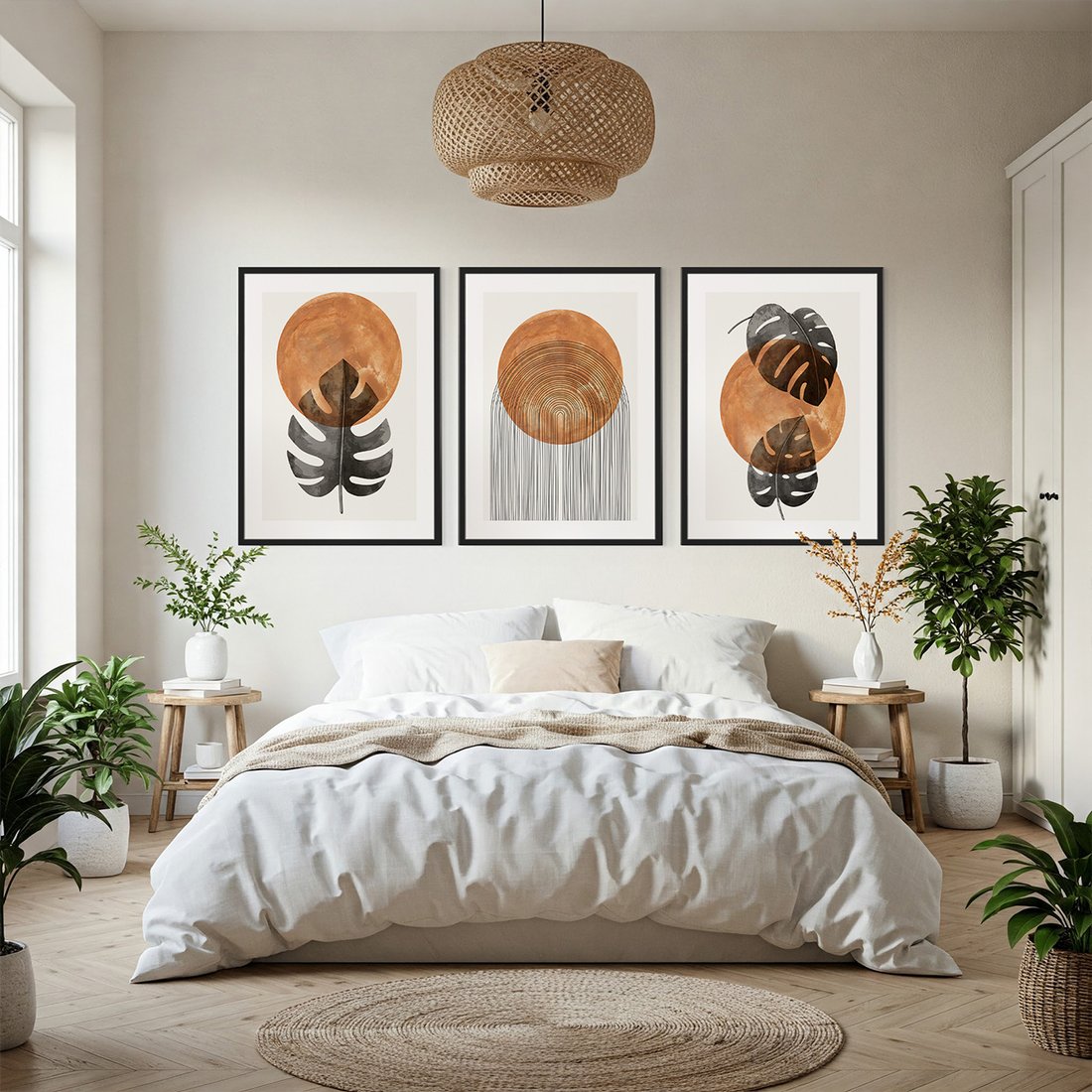 Przenieś piękno sztuki do swojego domu dzięki naszemu starannie skomponowanemu produktowi zestaw obrazów liście, abstrakcja, okrąg. Każdy plakat, oprawiony w elegancką ramę, łączy w sobie estetykę i trwałość. Uniwersalne wzornictwo sprawia, że te dekoracje ścienne doskonale komponują się z różnymi stylami wnętrz, od nowoczesnych po klasyczne. Łatwość montażu pozwala na szybką i bezproblemową metamorfozę Twojej przestrzeni. To również idealny pomysł na wyszukany prezent, który z pewnością zachwyci.