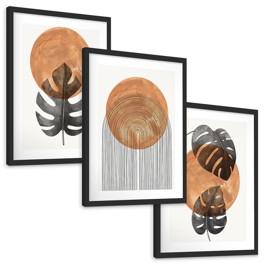Zestaw obrazy w ramie, plakaty - liście, abstrakcja, okrąg - rama czarna