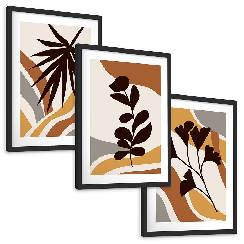 Zestaw obrazy w ramie, plakaty - liście, abstrakcja, rośliny - rama czarna