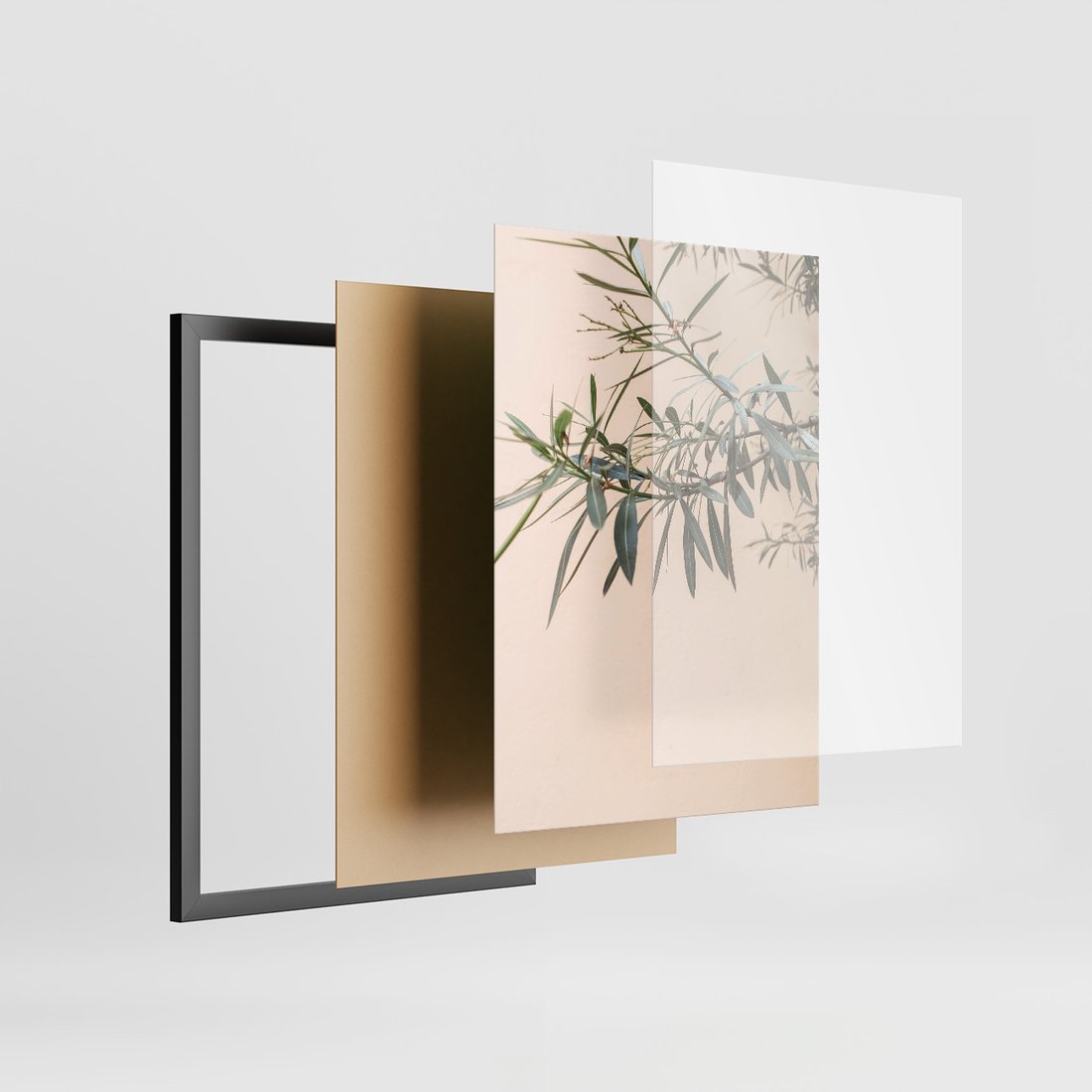 Zestaw obrazy w ramie, plakaty - liście, budynek, okno - rama czarna