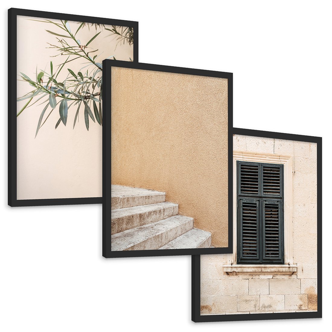 - Zestaw obrazy w ramie, plakaty - liście, budynek, okno
