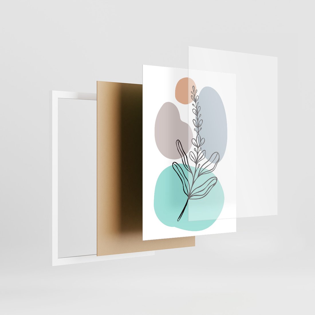 - Zestaw obrazy w ramie, plakaty - liście, gałązki, abstrakcja