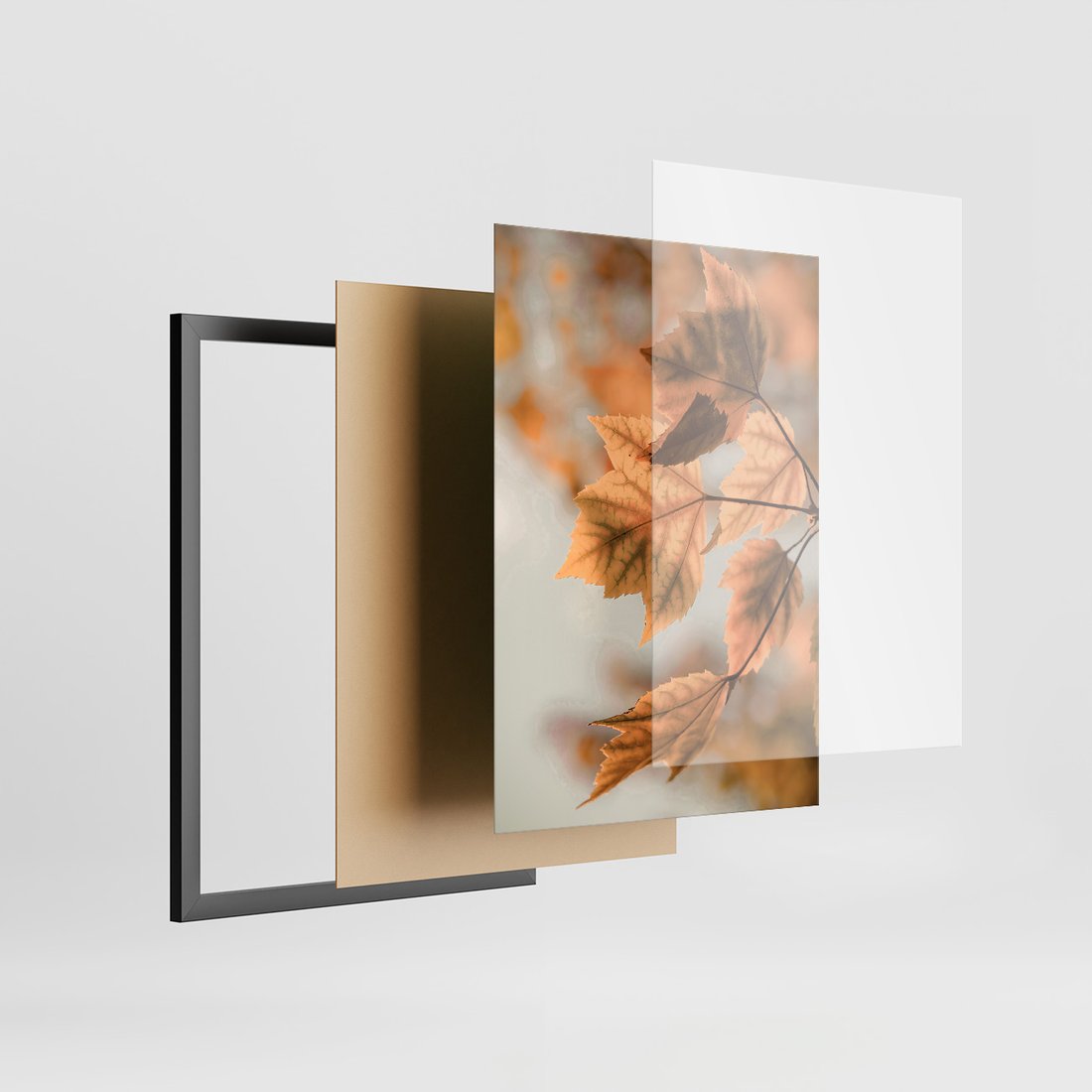 Zestaw obrazy w ramie, plakaty - liście, jesień, budynek - rama czarna