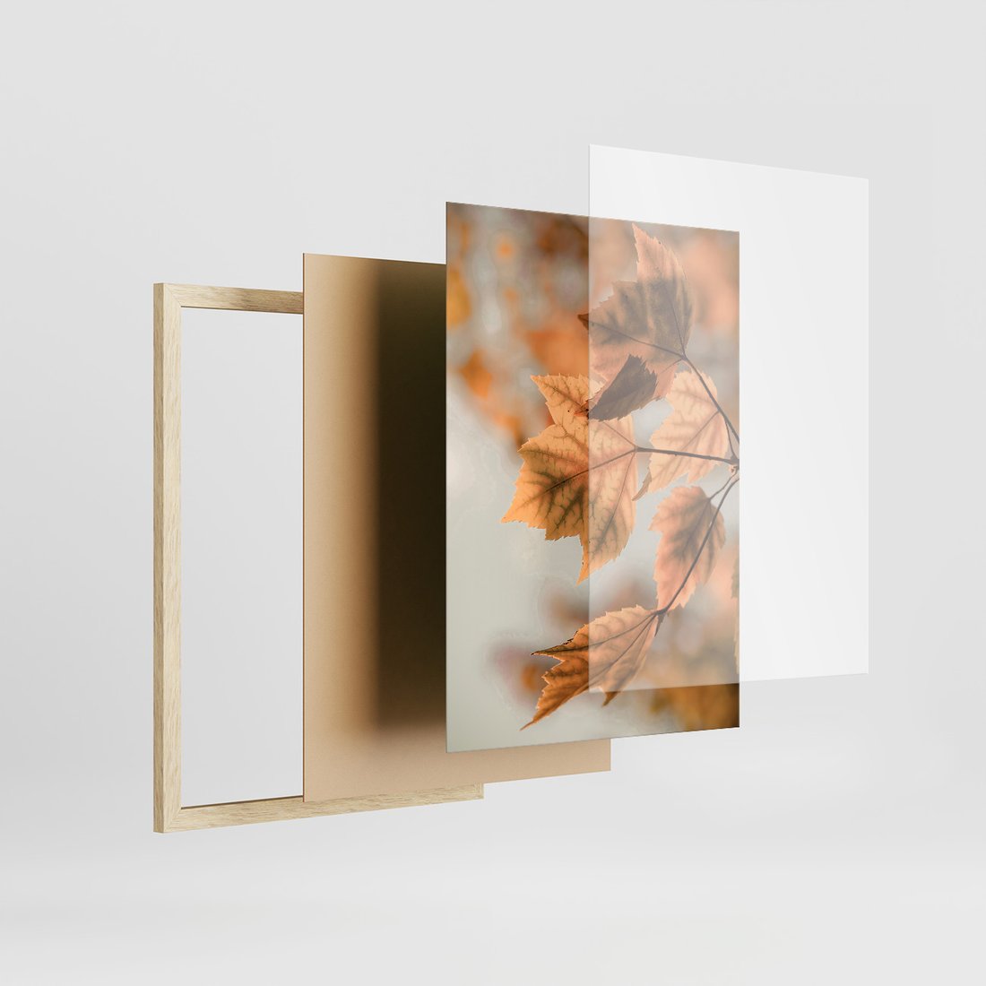Zestaw obrazy w ramie, plakaty - liście, jesień, budynek - rama drewno