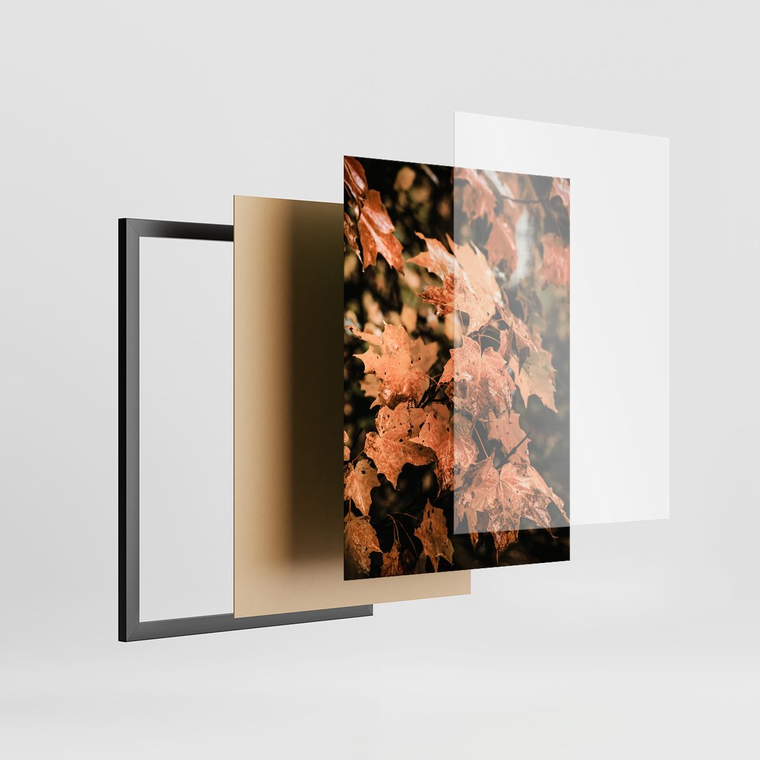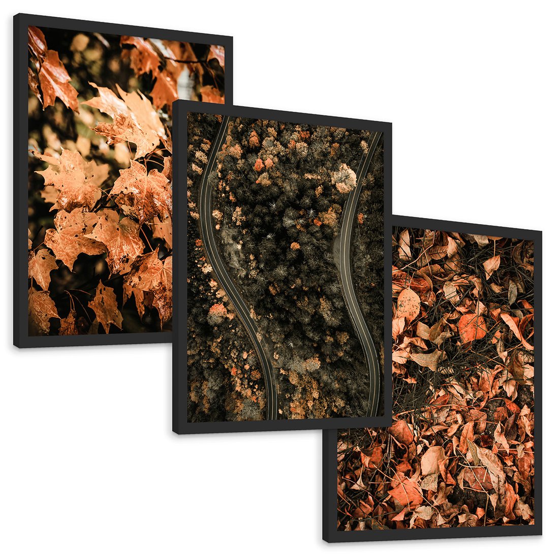 Zestaw obrazy w ramie, plakaty - liście, jesień, droga - rama czarna