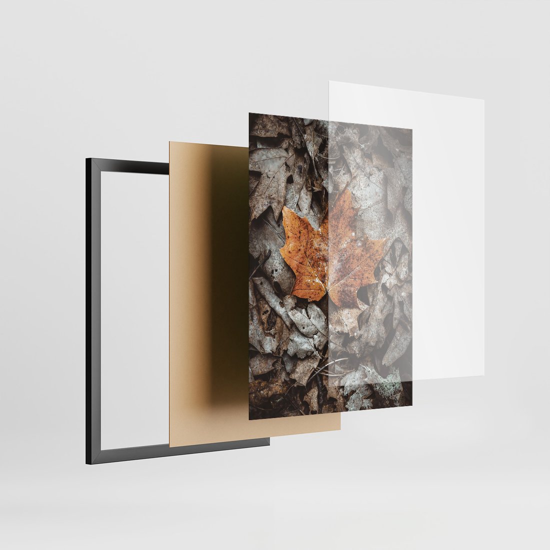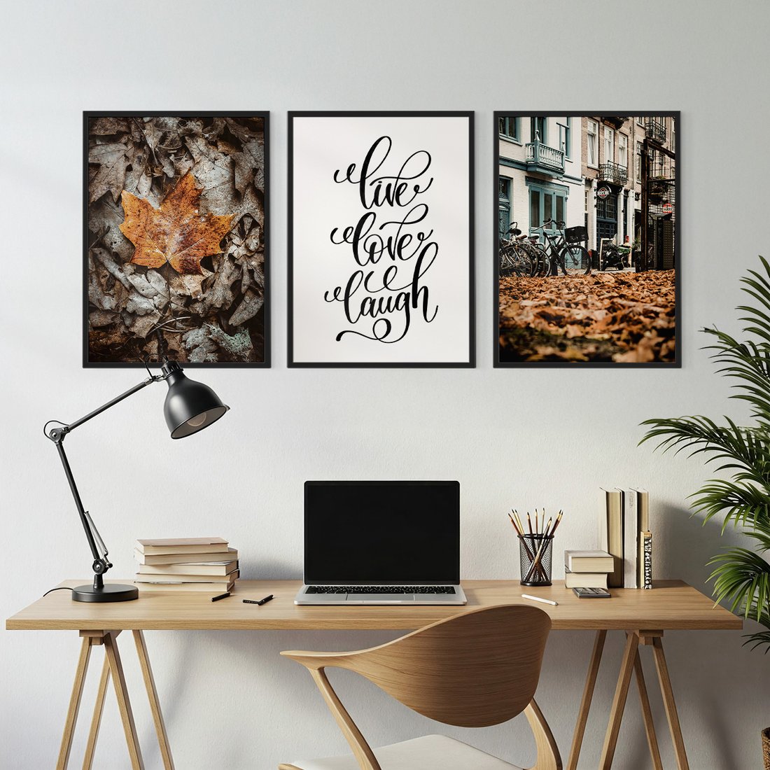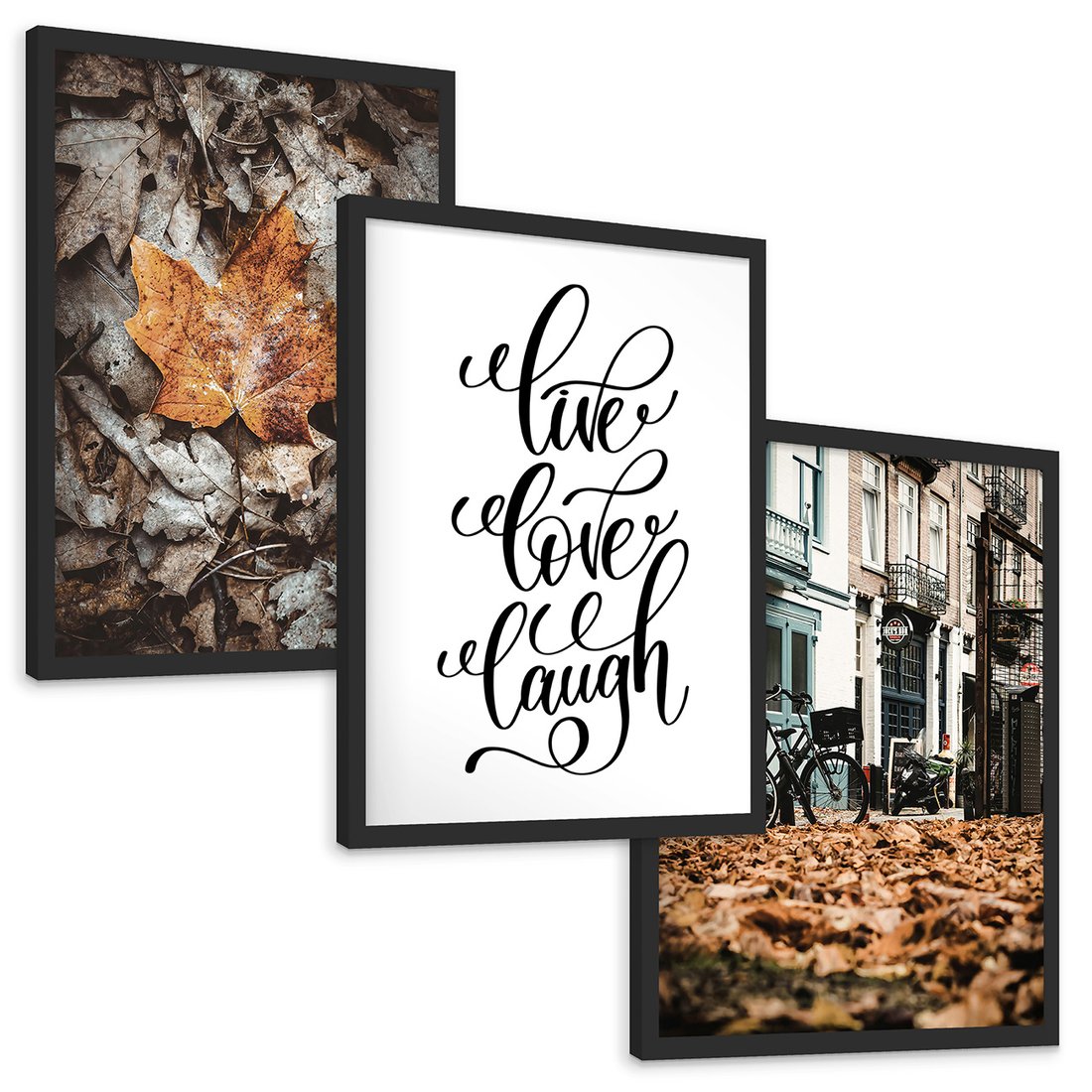 Zestaw obrazy w ramie, plakaty - liście, jesień, napisy - rama czarna