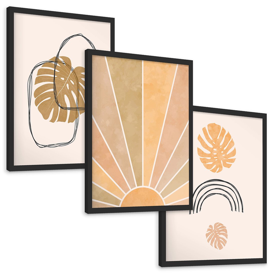 - Zestaw obrazy w ramie, plakaty - liście, monstera, abstrakcja