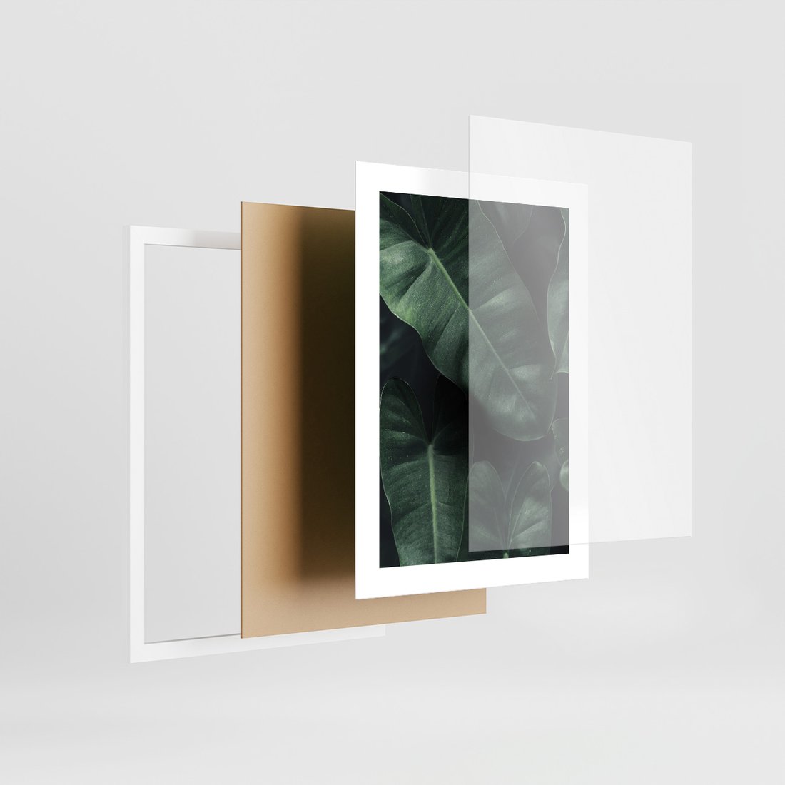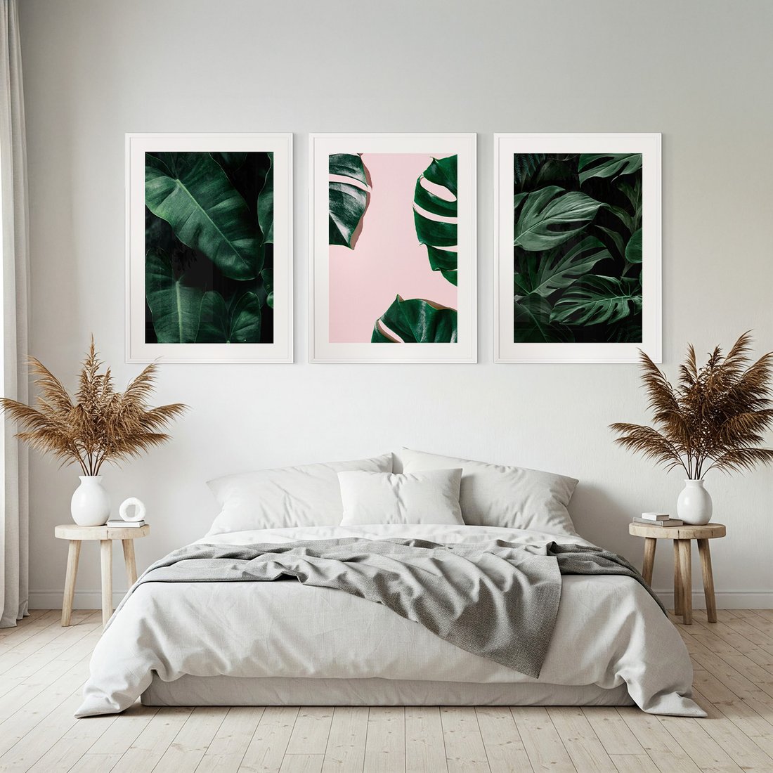 Zestaw obrazy w ramie, plakaty - liście, monstera, rośliny - rama biała