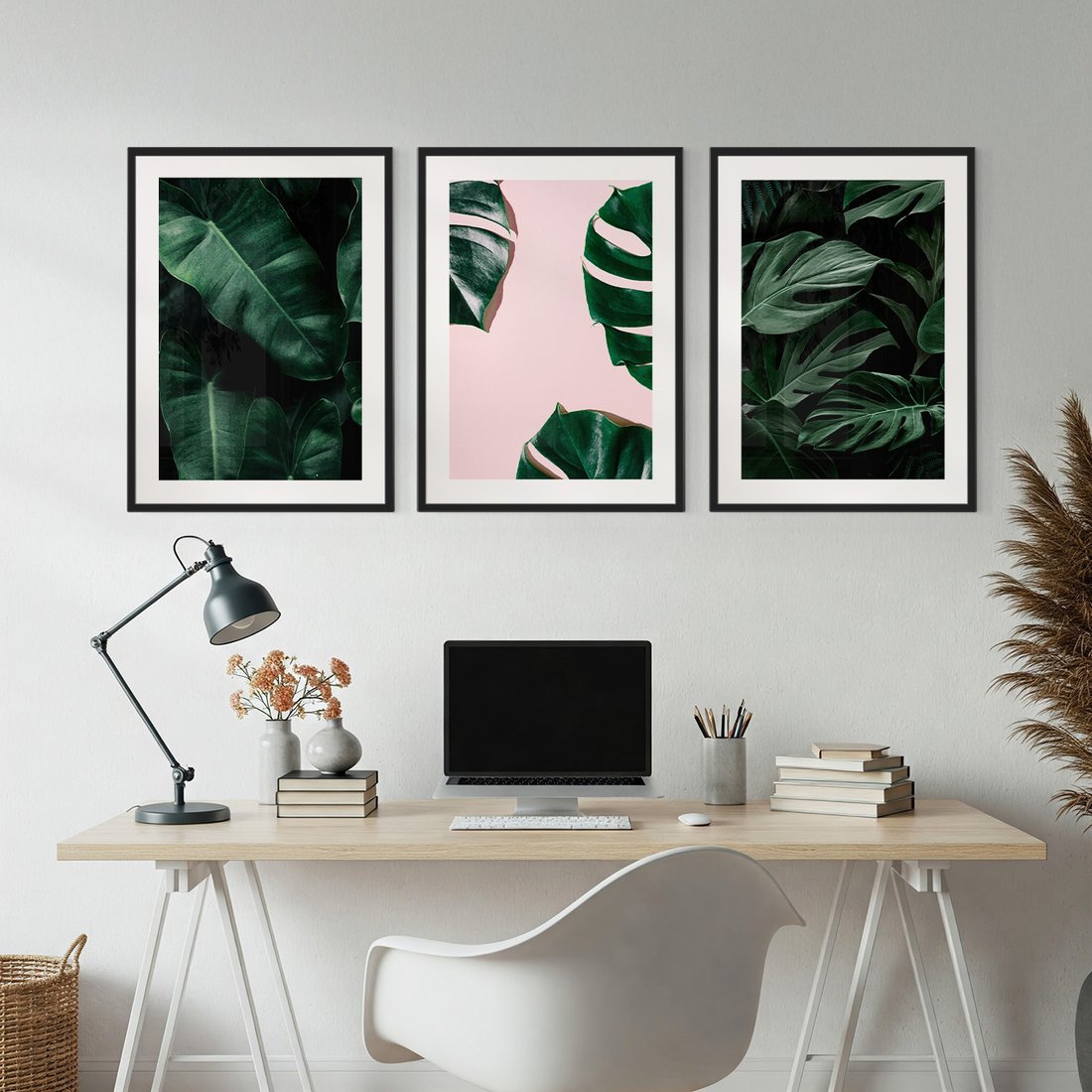 • Zestaw obrazy w ramie, plakaty - liście, monstera, rośliny